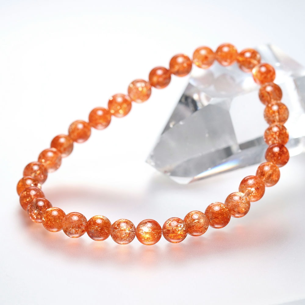 サンストーンは持ち主の不安を和らげ、心を明るく照らしてくれる強いエネルギーを持つとも云われており、世界的に人気の天然石ブレスレットです。