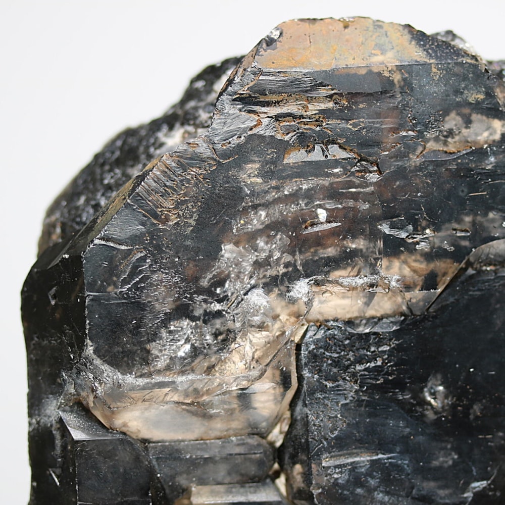 これは恐らく、元々モリオンができあがった鉱床が地殻変動などにより環境変化し放射線の影響を受け難くなったことで、「後期はスモーキークォーツとして結晶化」されたことにより生まれたと思われます。