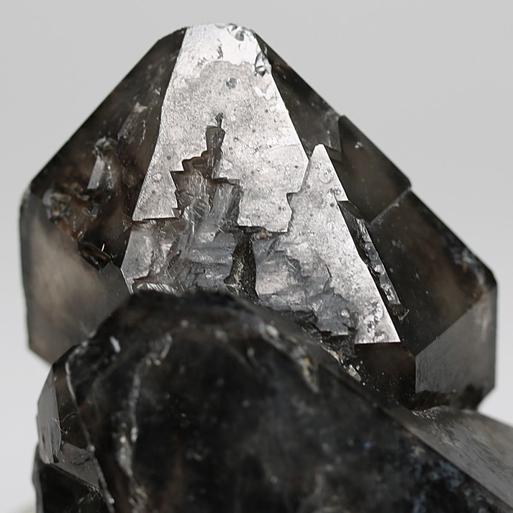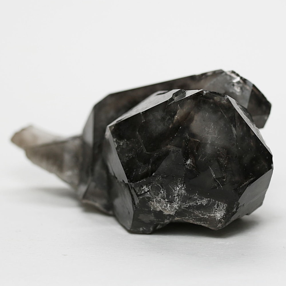 これは恐らく、元々モリオンができあがった鉱床が地殻変動などにより環境変化し放射線の影響を受け難くなったことで、「後期はスモーキークォーツとして結晶化」されたことにより生まれたと思われます。