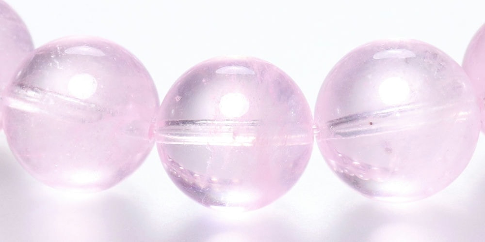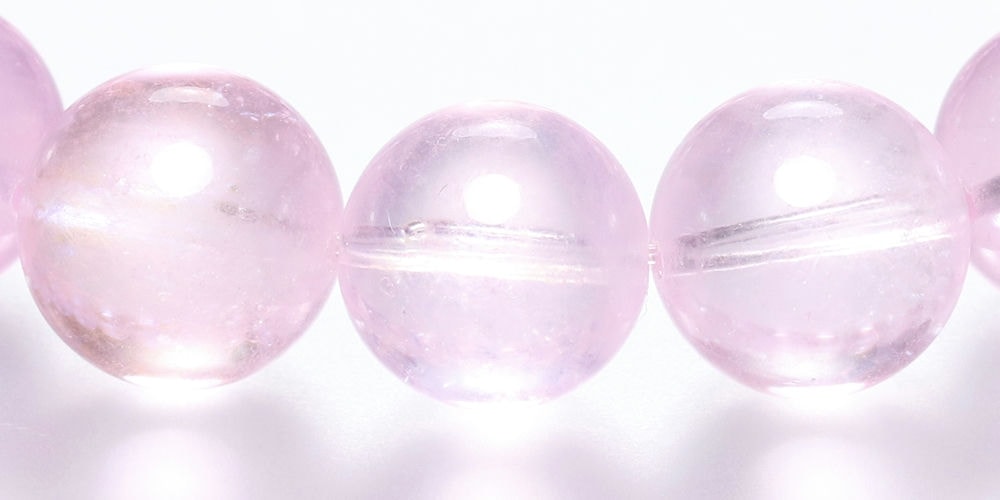 ご覧のお品は、透明感ある “クリアピンク1色で揃えた【高品質+】モルガナイトブレスレット” です。
