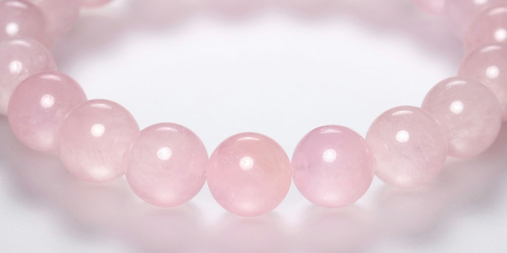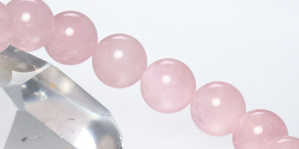 同じくピンクカラー天然石として人気のローズクォーツブレスレットやピンクトルマリンブレスレットとも少し違った雰囲気が素敵です。