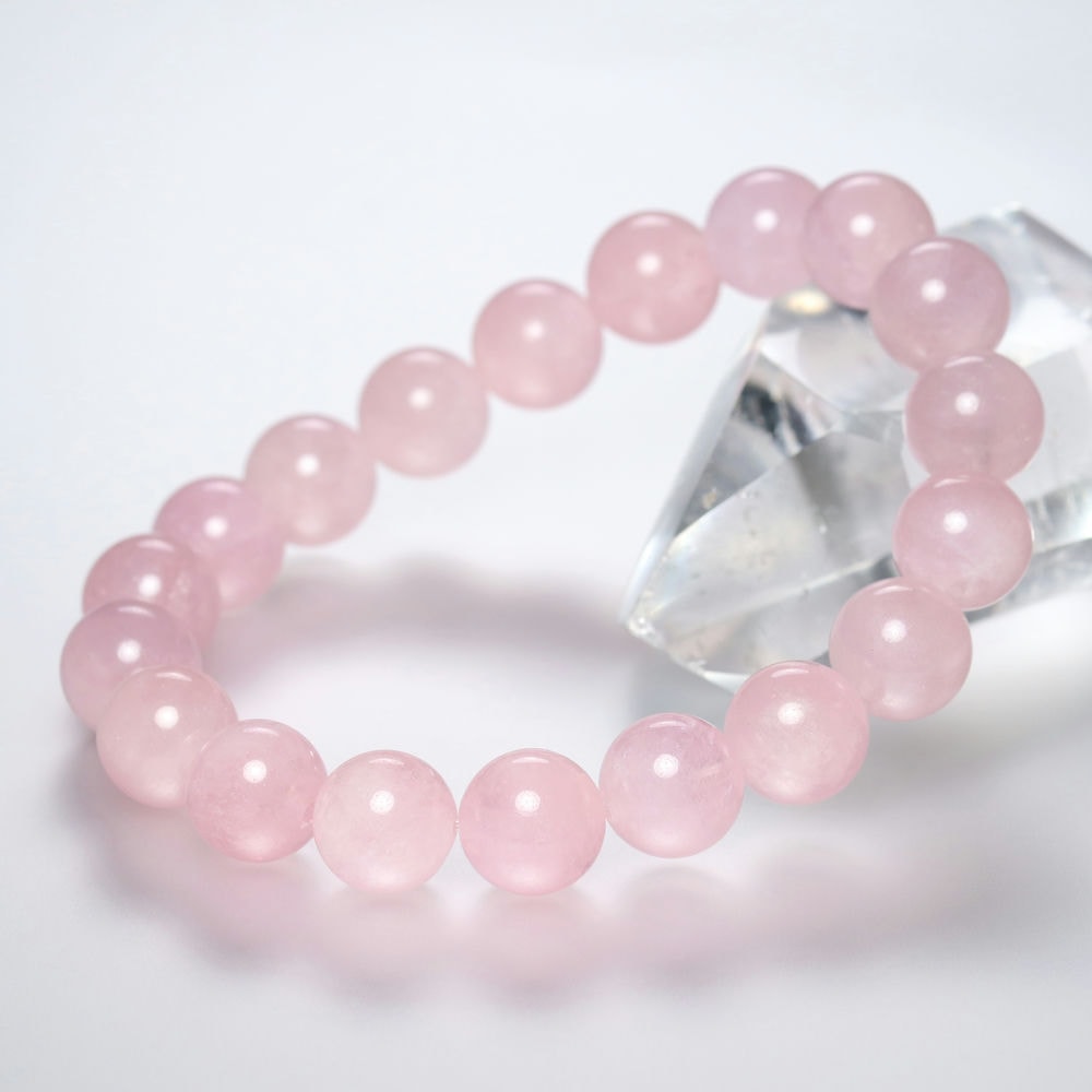 [高品質]ピンクモルガナイトブレスレット(約10mm玉・ミルキータイプ)