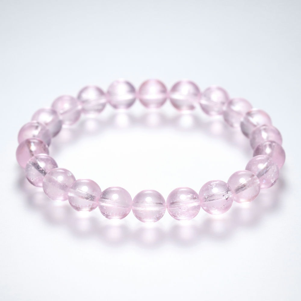 ご覧のお品は、透明度高く、トップ品質に次いでクラックも少ない、発色美しい “クリアピンク1色で揃えた【高品質++】モルガナイトブレスレット” です。