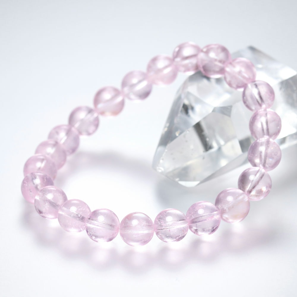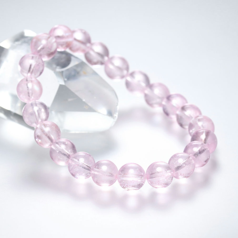 [高品質++]ピンクモルガナイトブレスレット(約9mm玉)¥42,500クイックガイド送料