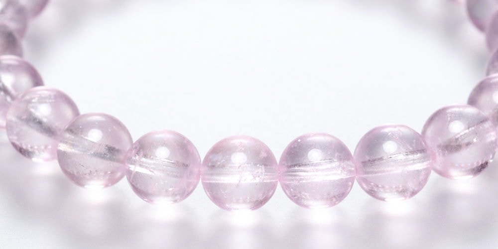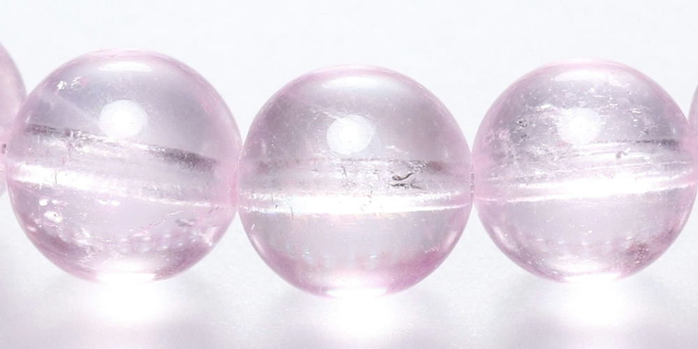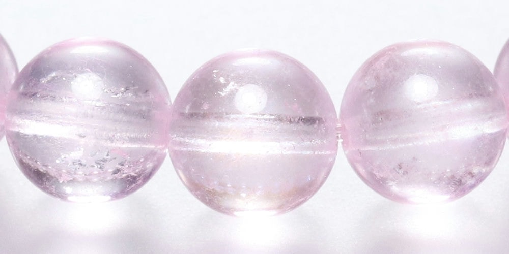 ご覧のお品は、透明度高く、トップ品質に次いでクラックも少ない、発色美しい “クリアピンク1色で揃えた【高品質++】モルガナイトブレスレット” です。