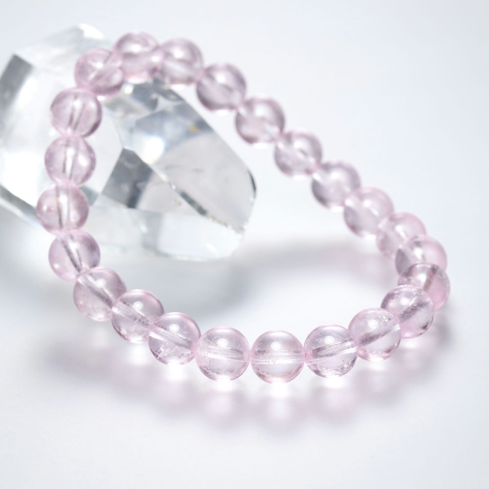 [高品質++]ピンクモルガナイトブレスレット(約8mm玉)¥32,000クイックガイド送料