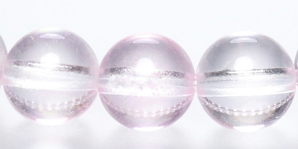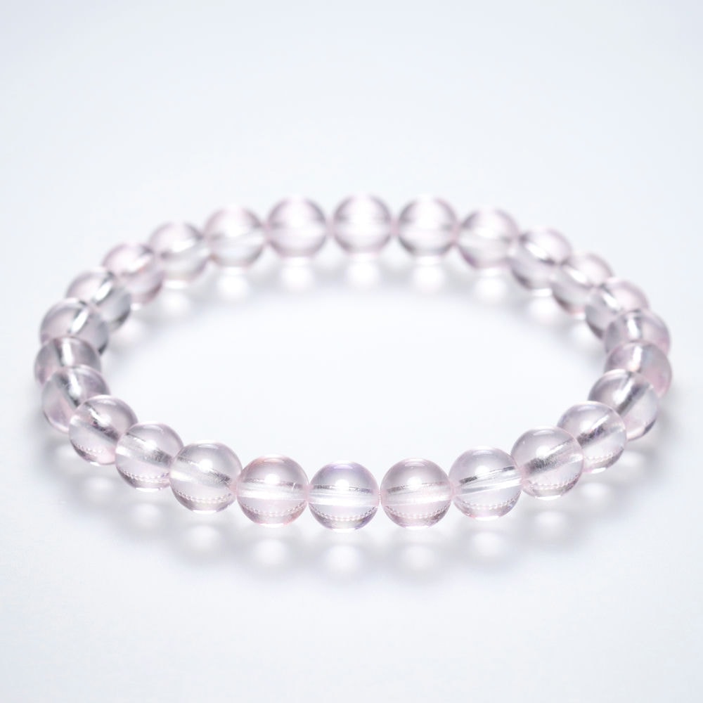 ご覧のお品は、透明度高く、トップ品質に次いでクラックも少ない、 “クリアピンク1色で揃えた【高品質++】モルガナイトブレスレット” です。