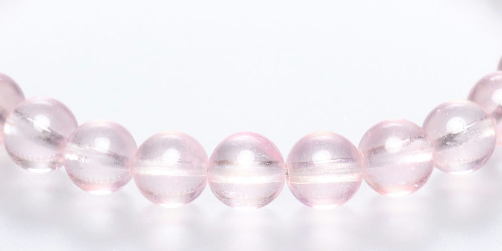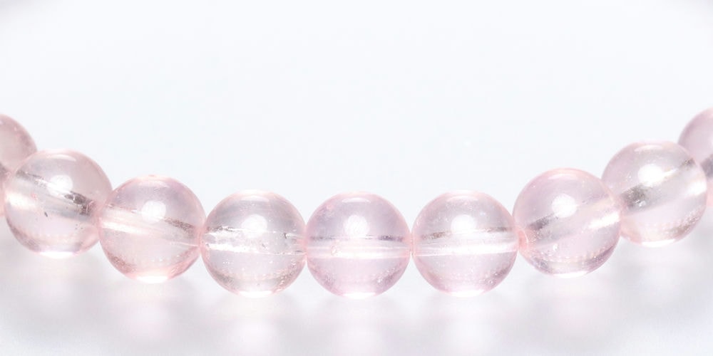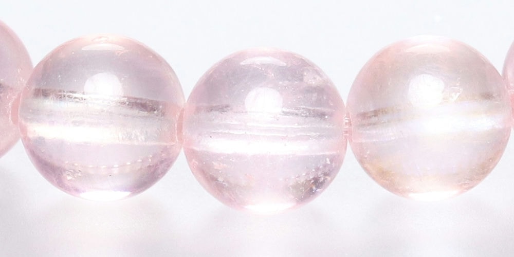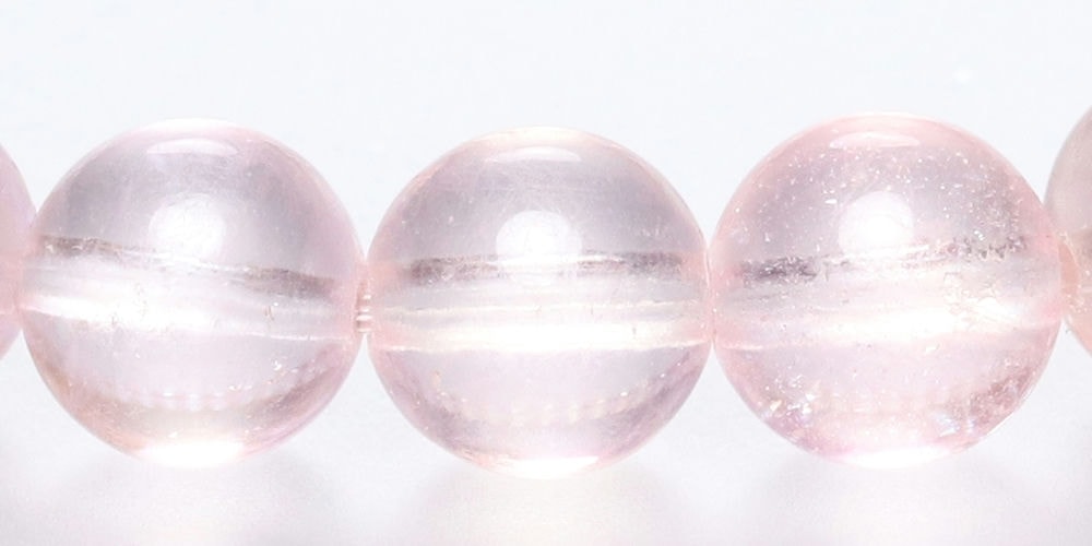 ご覧のお品は、透明度高く、トップ品質に次いでクラックも少ない、発色美しい “クリアピンク1色で揃えた【高品質++】モルガナイトブレスレット” です。