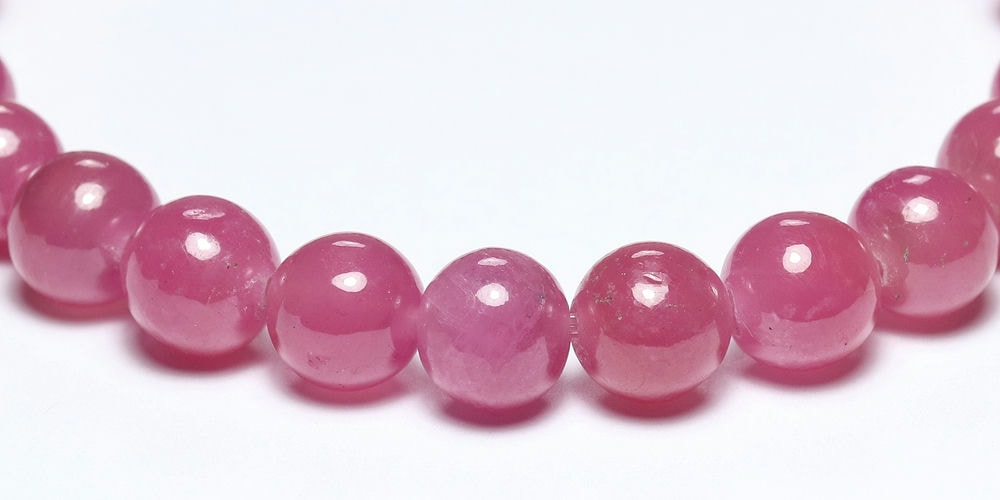 ご覧のピンクサファイアブレスレットは、当店インフォニックでひと粒ひと粒...地道に取り除き、僅かに残った高品質粒で組み上げたお品です。