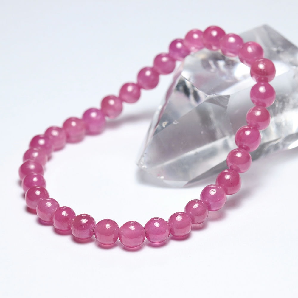 ご覧のピンクサファイアブレスレットは、当店インフォニックでひと粒ひと粒...地道に取り除き、僅かに残った高品質粒で組み上げたお品です。