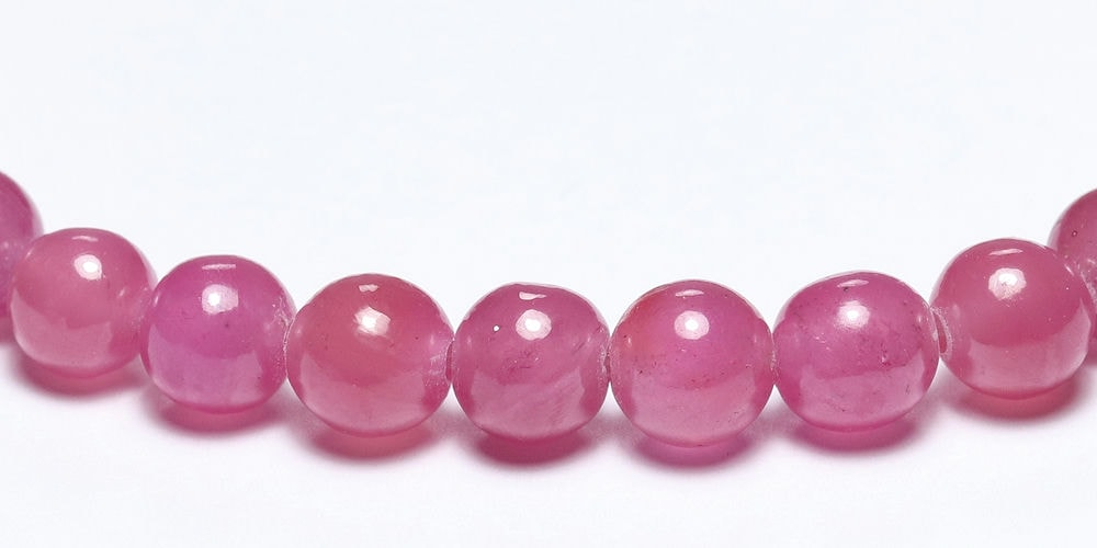 ご覧のピンクサファイアブレスレットは、当店インフォニックでひと粒ひと粒...地道に取り除き、僅かに残った高品質粒で組み上げたお品です。