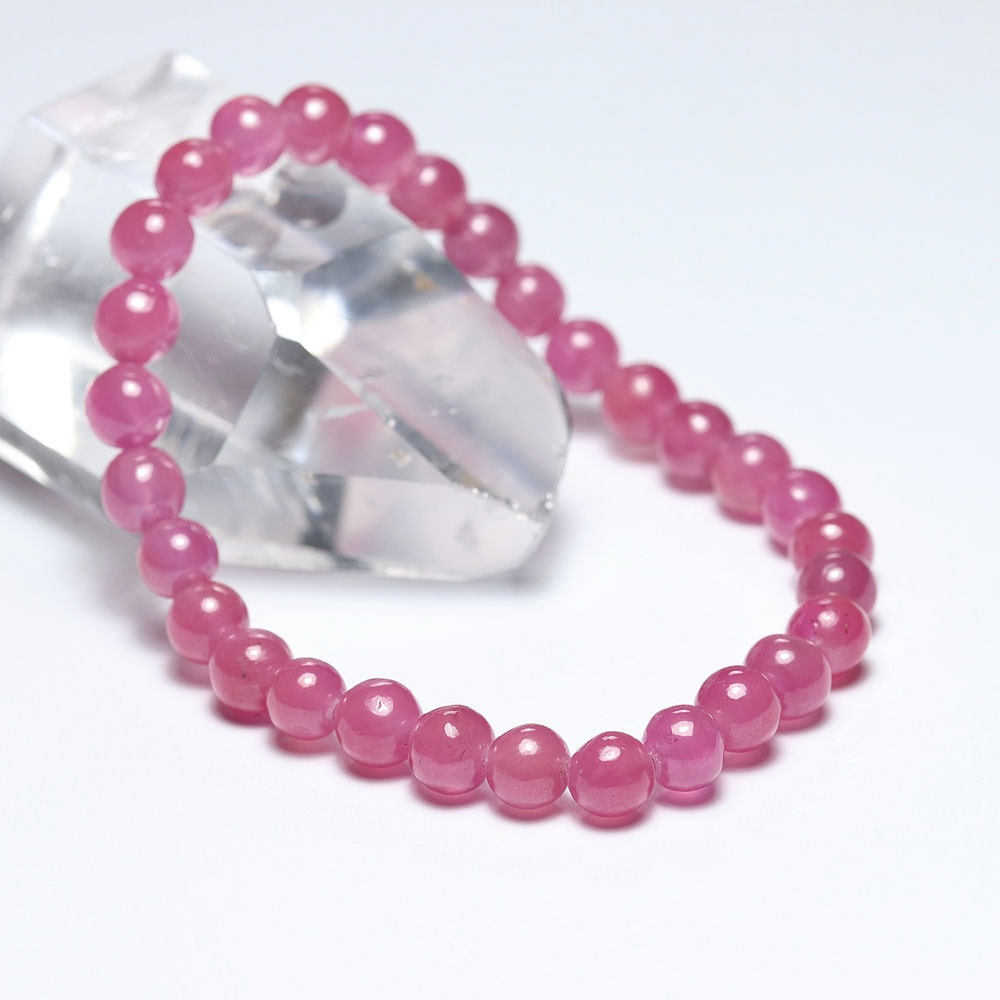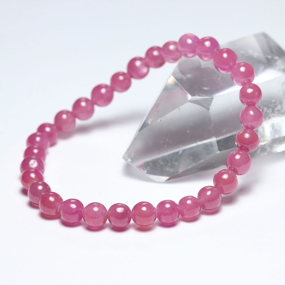 [高品質++]ピンクサファイアブレスレット(約6mm玉)¥31,000クイックガイド送料
