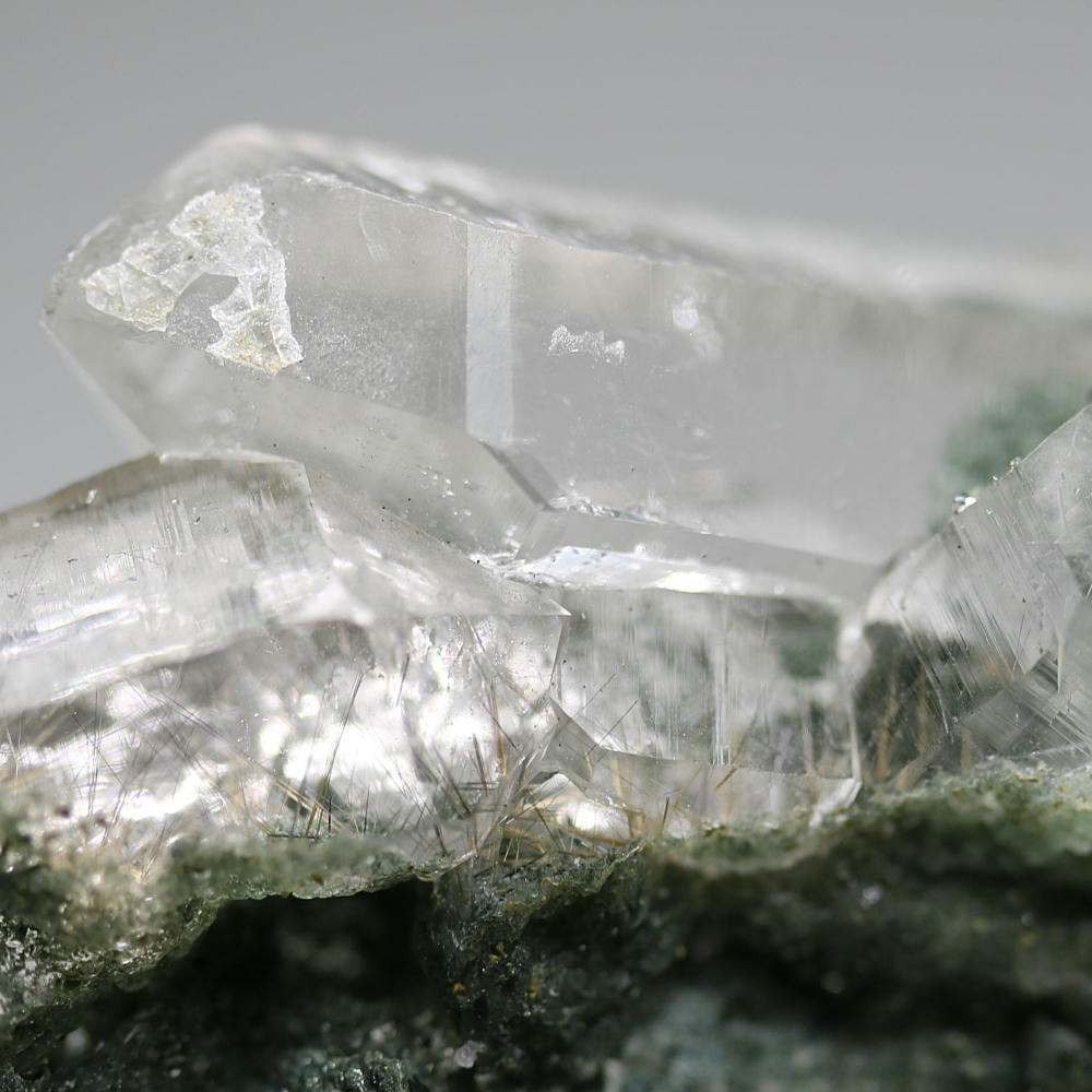 透明度高い結晶の中に走る繊細なルチルが、自然が生み出した造形美をそのまま感じさせてくれる逸品です。