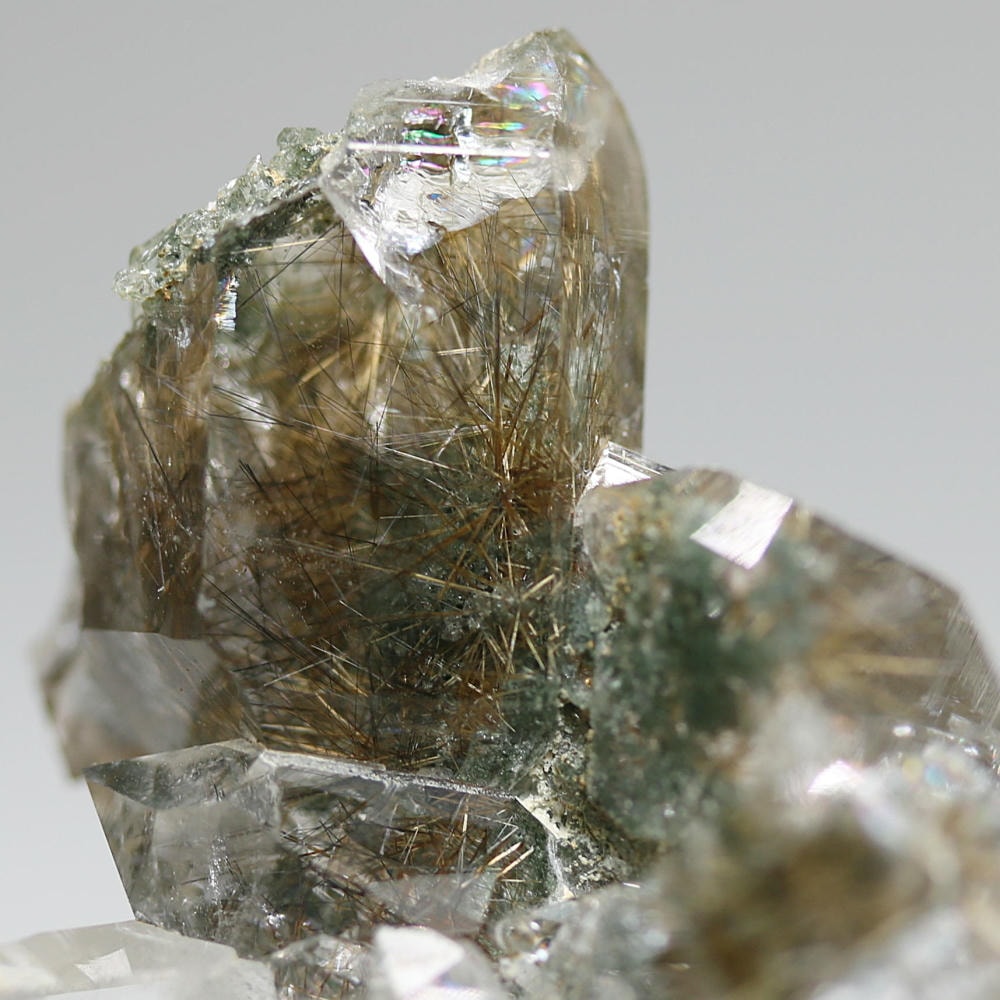 こちらのお品はインクルージョンされたクローライト(緑泥石)を起点に、放射状に広がる繊細なルチルが、自然が生み出した造形美をそのまま感じさせてくれる逸品です。