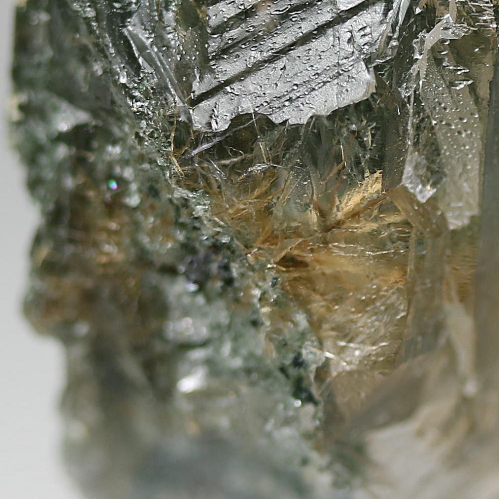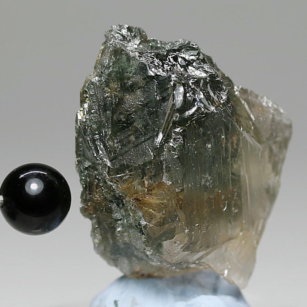 照り艶良い結晶の中に走る繊細なルチルが、自然が生み出した造形美をそのまま感じさせてくれる逸品です。