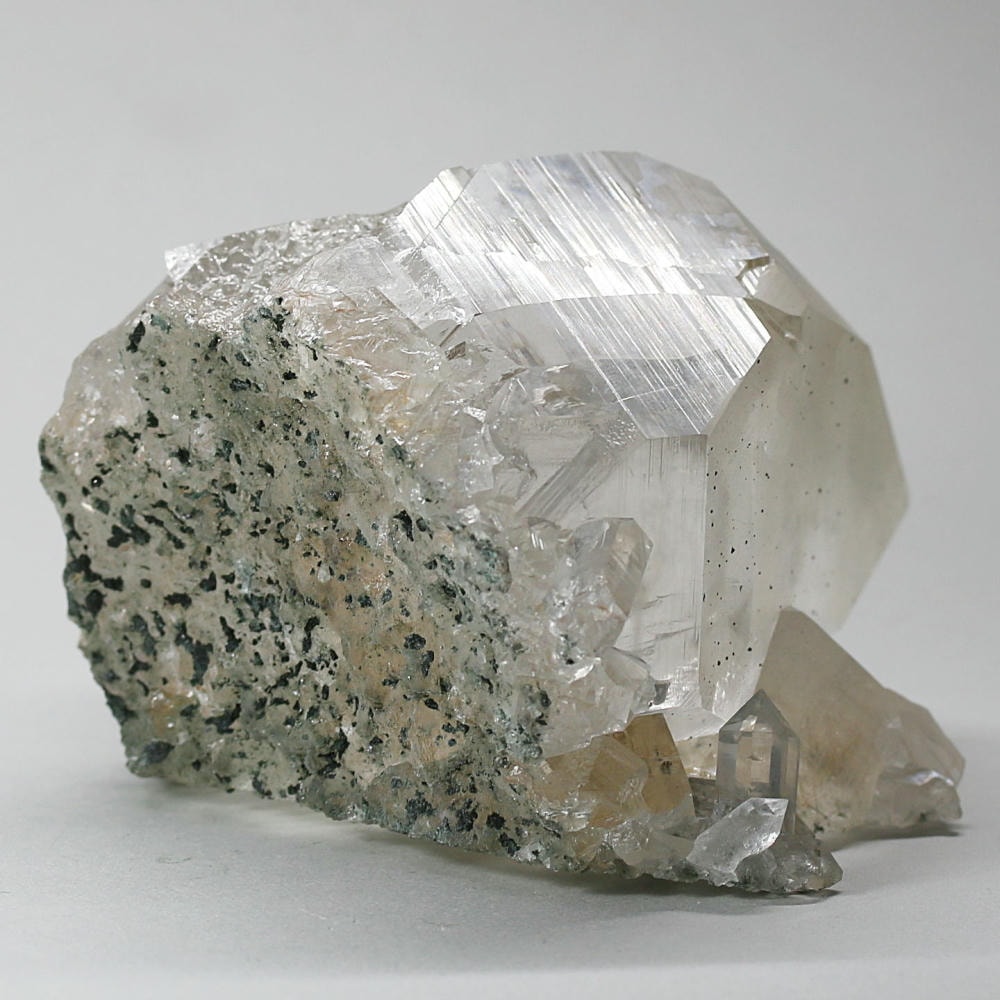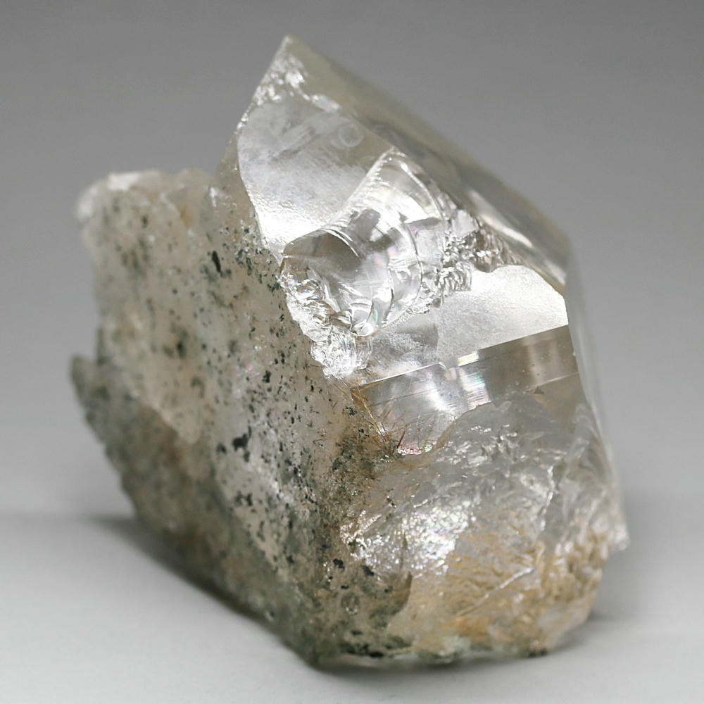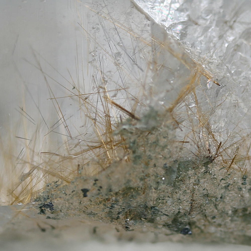 こちらのお品は側面と底面に付着&インクルージョンされたクローライト(緑泥石)を起点に、放射状に広がる繊細なルチルが、自然が生み出した造形美をそのまま感じさせてくれる逸品です。