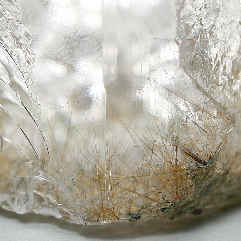 水晶にルチル結晶が内包された、希少な未加工原石をご用意しました。
