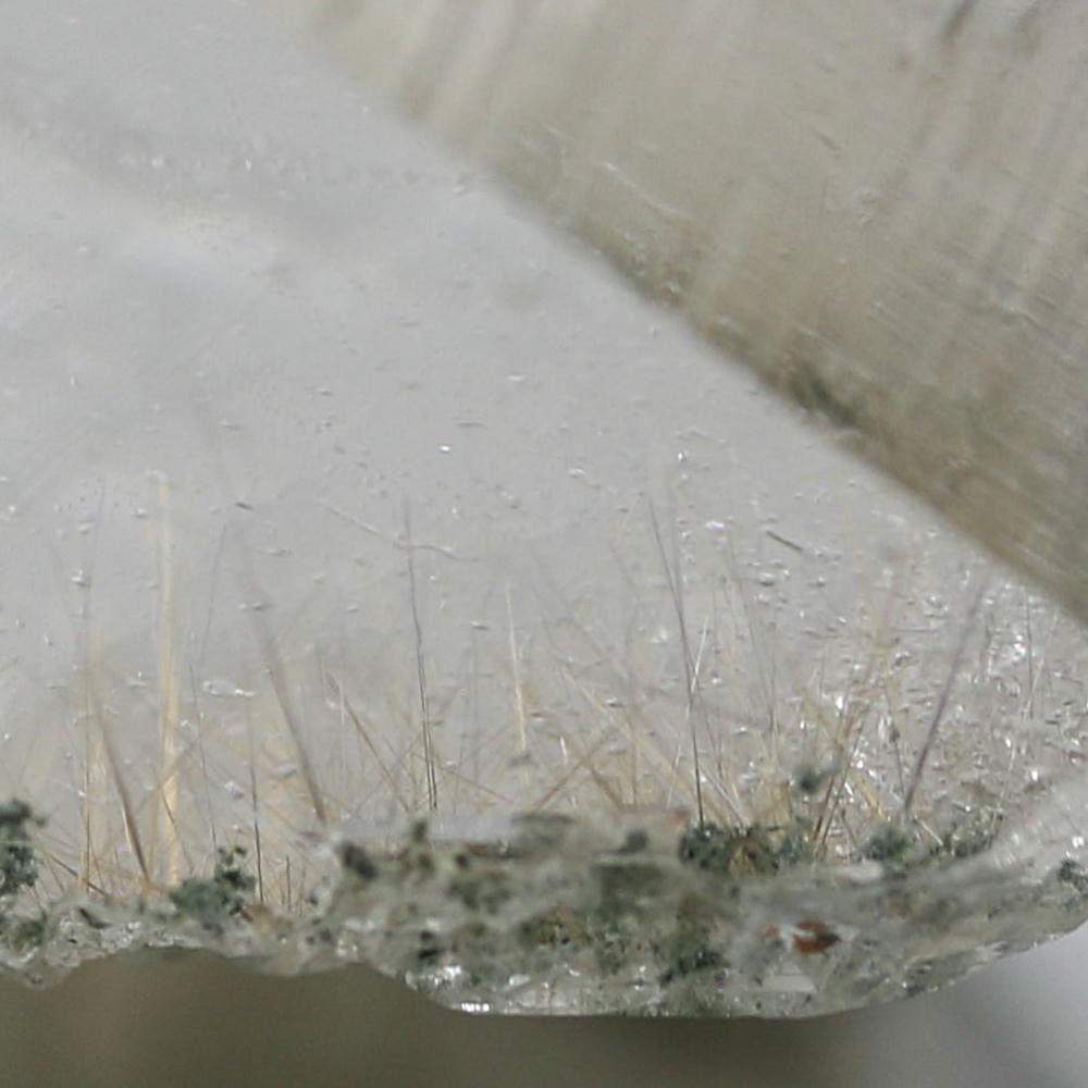 水晶にルチル結晶が僅かに内包された、希少な未加工原石をご用意しました。