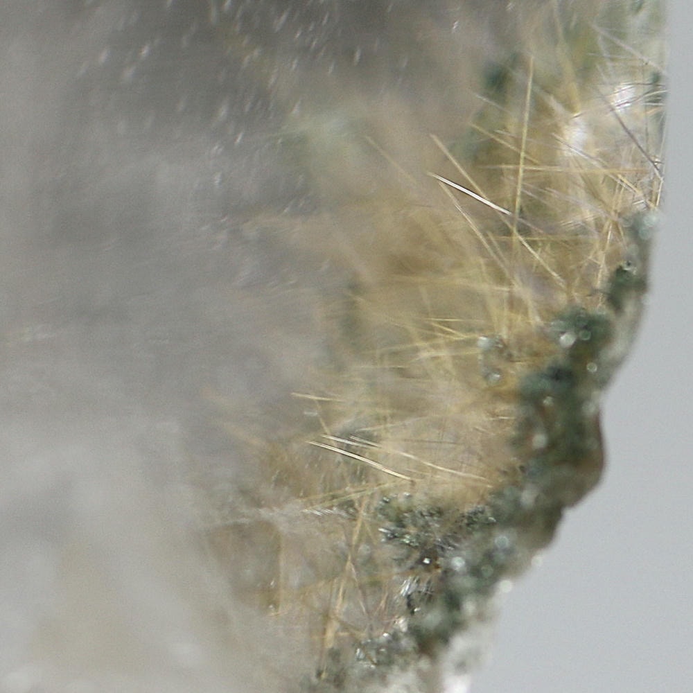 こちらのお品は底面を覆うようにインクルージョンされたクローライト(緑泥石)を起点に、放射状に広がる繊細なルチルが、自然が生み出した造形美をそのまま感じさせてくれる逸品です。