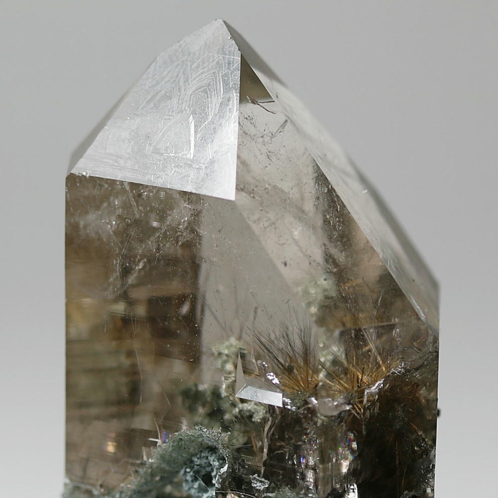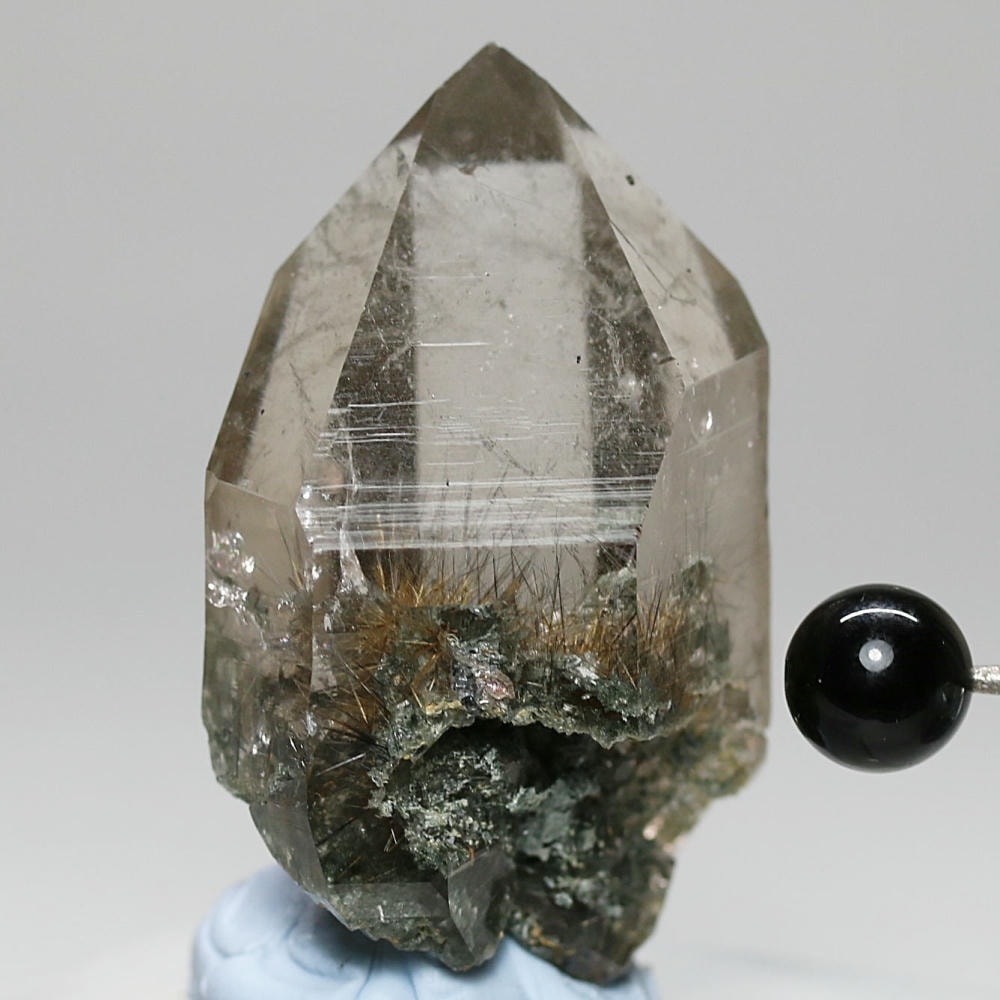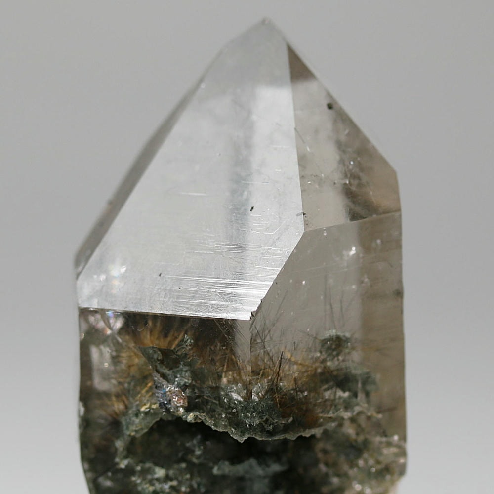 照り艶美しく、透明度の高い結晶の中に明瞭に見られる繊細なルチルが、自然が生み出した造形美をそのまま感じさせてくれる逸品です。
