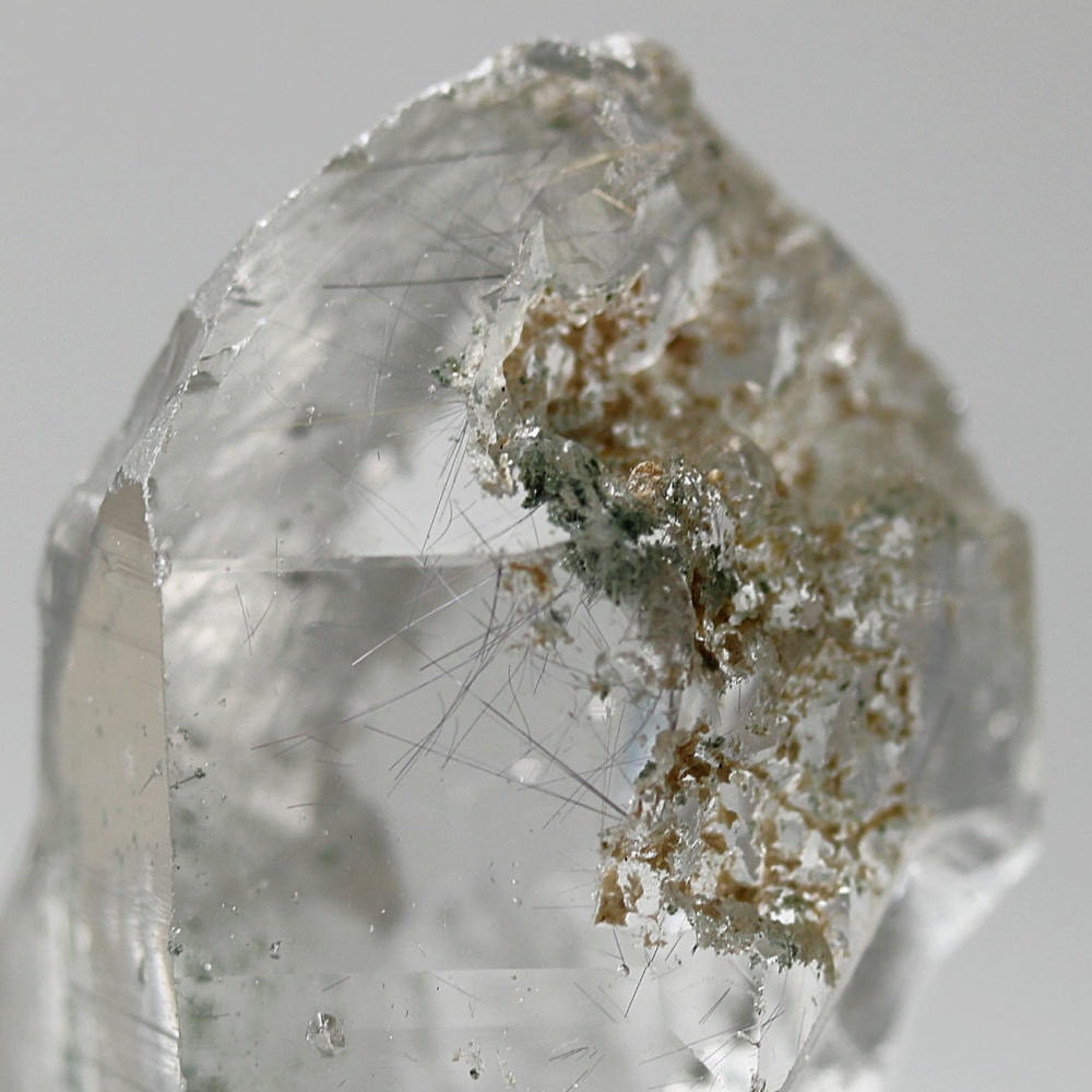 透明感を持つ結晶の中に、僅かに見られる繊細なルチルが、自然が生み出した造形美をそのまま感じさせてくれる逸品です。