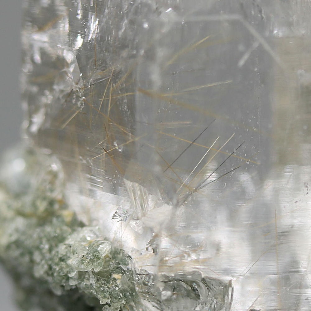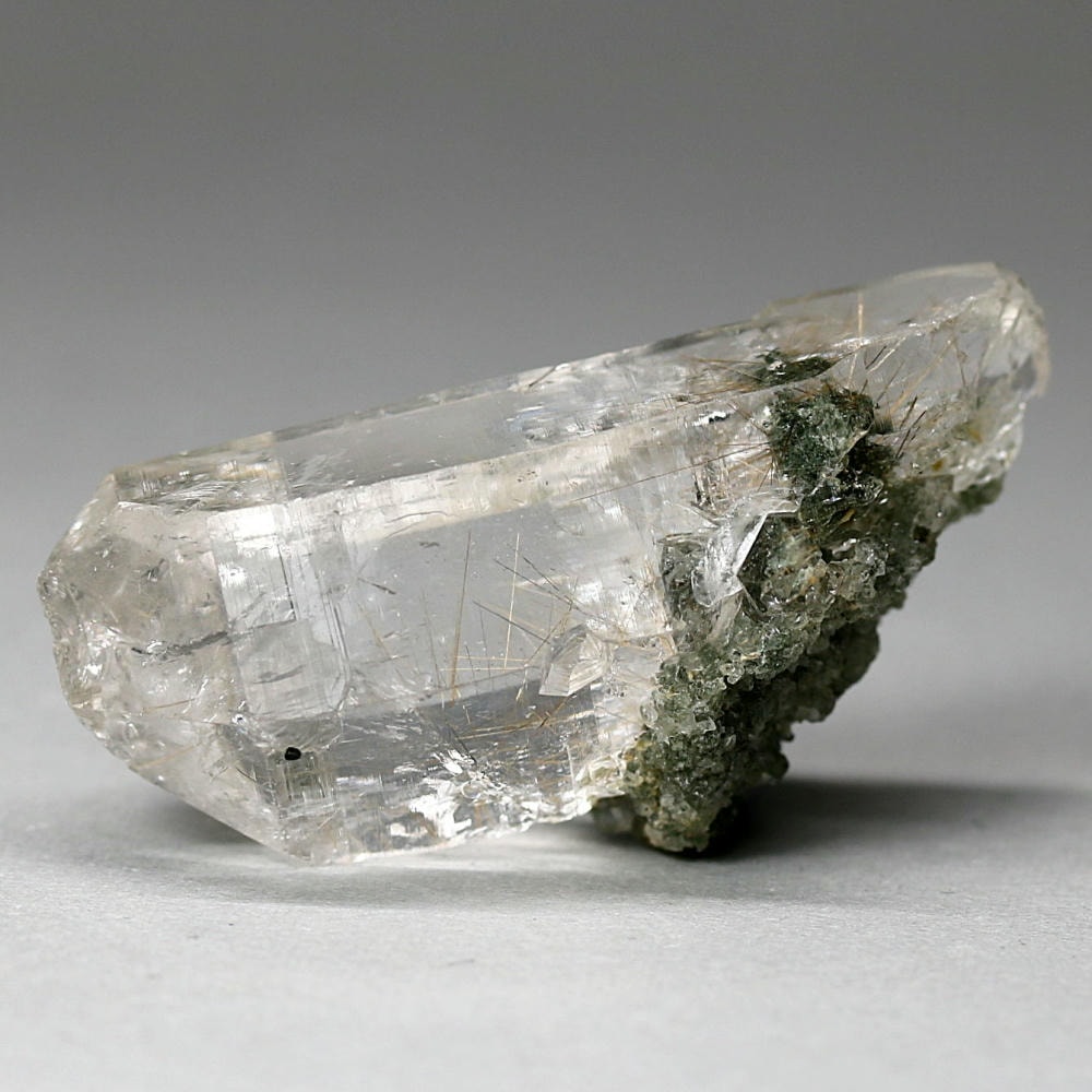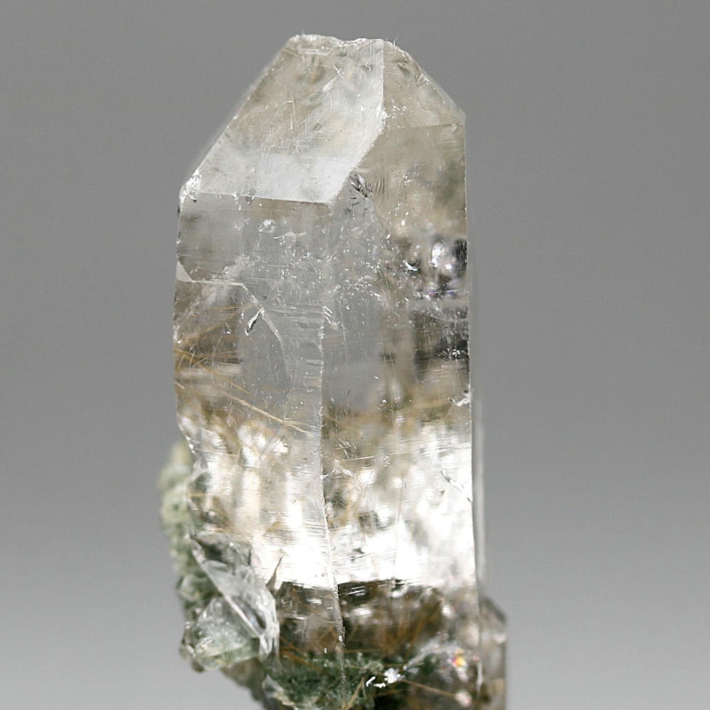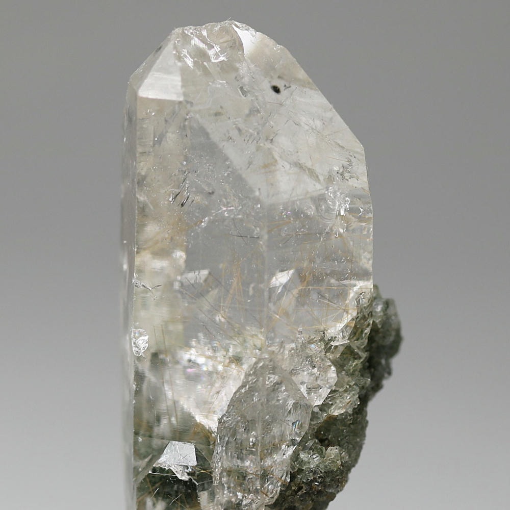 照り艶良く、透明度高い結晶の中に走る繊細なルチルが、自然が生み出した造形美をそのまま感じさせてくれる逸品です。