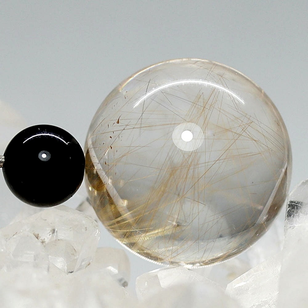 [高品質]インド/マニハール産ヒマラヤ水晶丸玉/ルチルクォーツスフィア(球体直径26.6mm)¥91,800クイックガイド送料