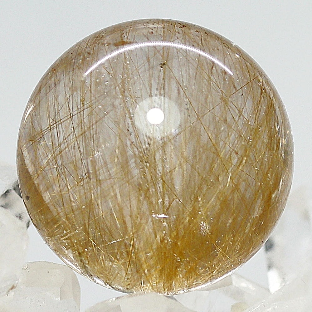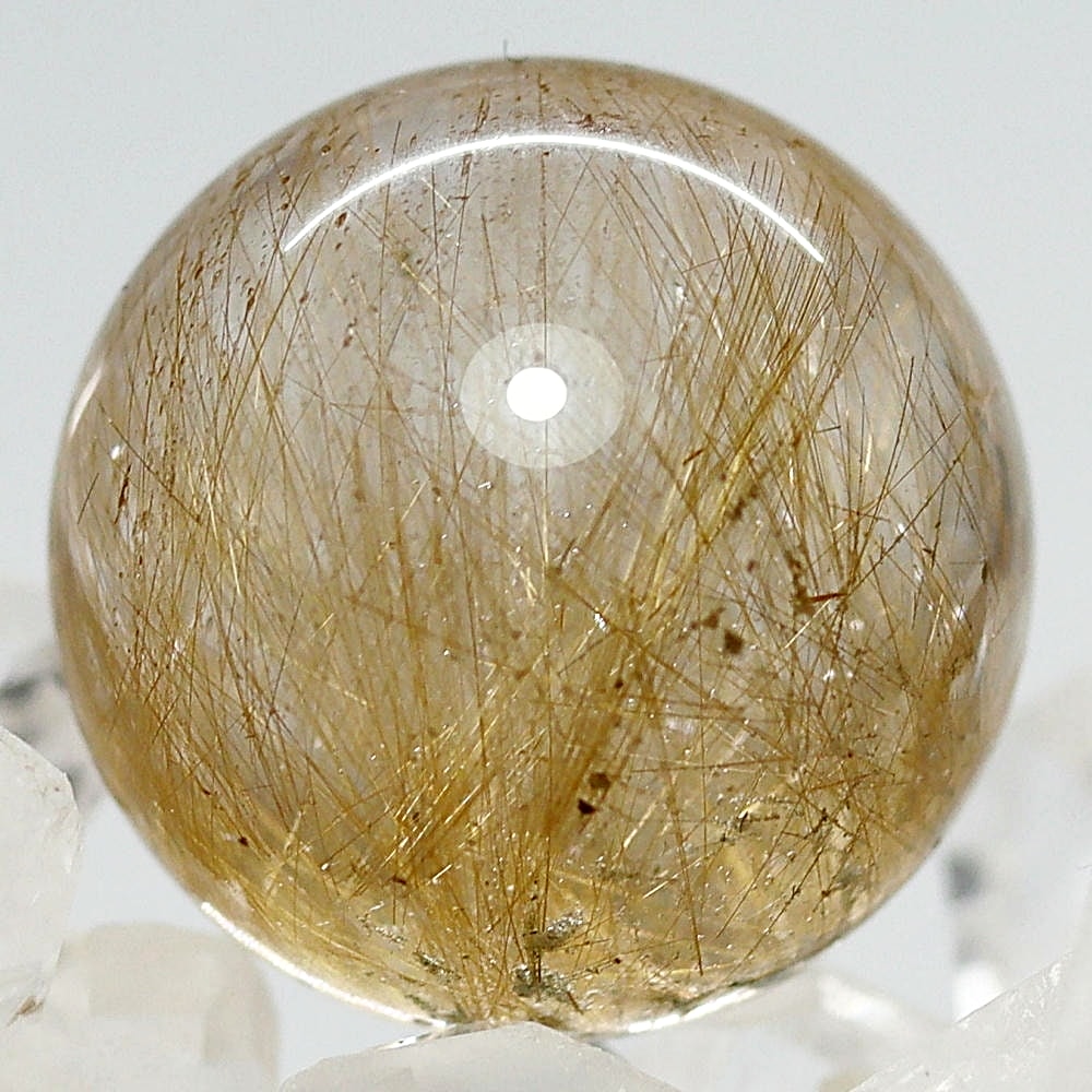 [高品質++]インド/マニハール産ヒマラヤ水晶丸玉/ルチルクォーツスフィア(球体直径22.5mm・無数の小さな水入り?)