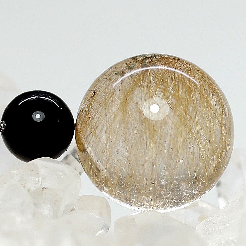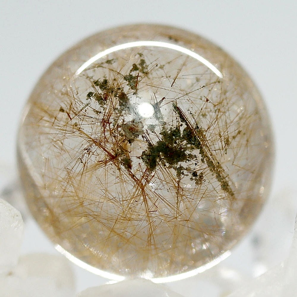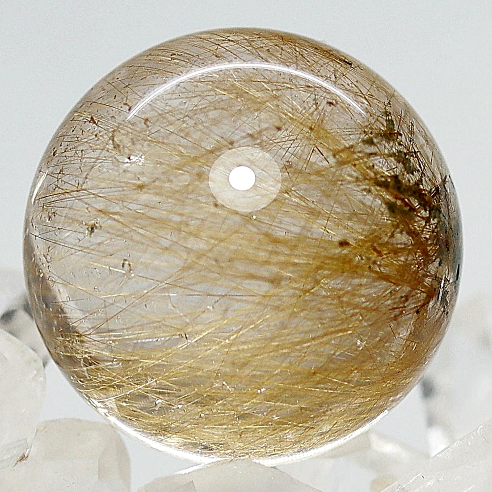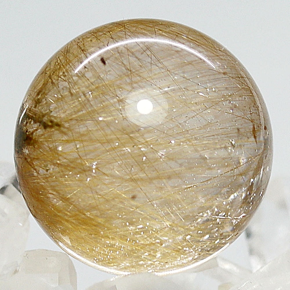 [高品質++]インド/マニハール産ヒマラヤ水晶丸玉/ルチルクォーツスフィア(球体直径22.5mm・無数の小さな水入り?)¥68,000クイックガイド送料