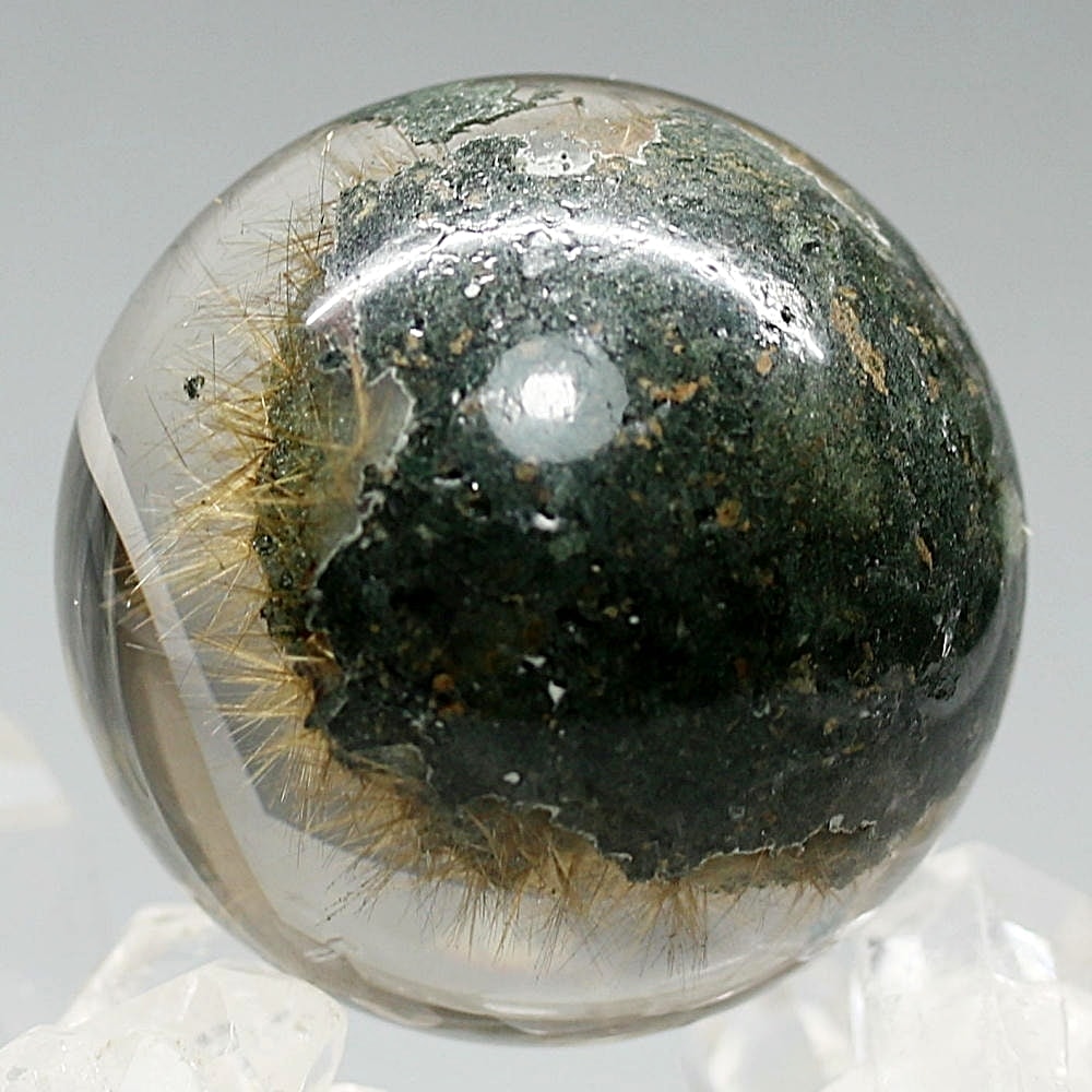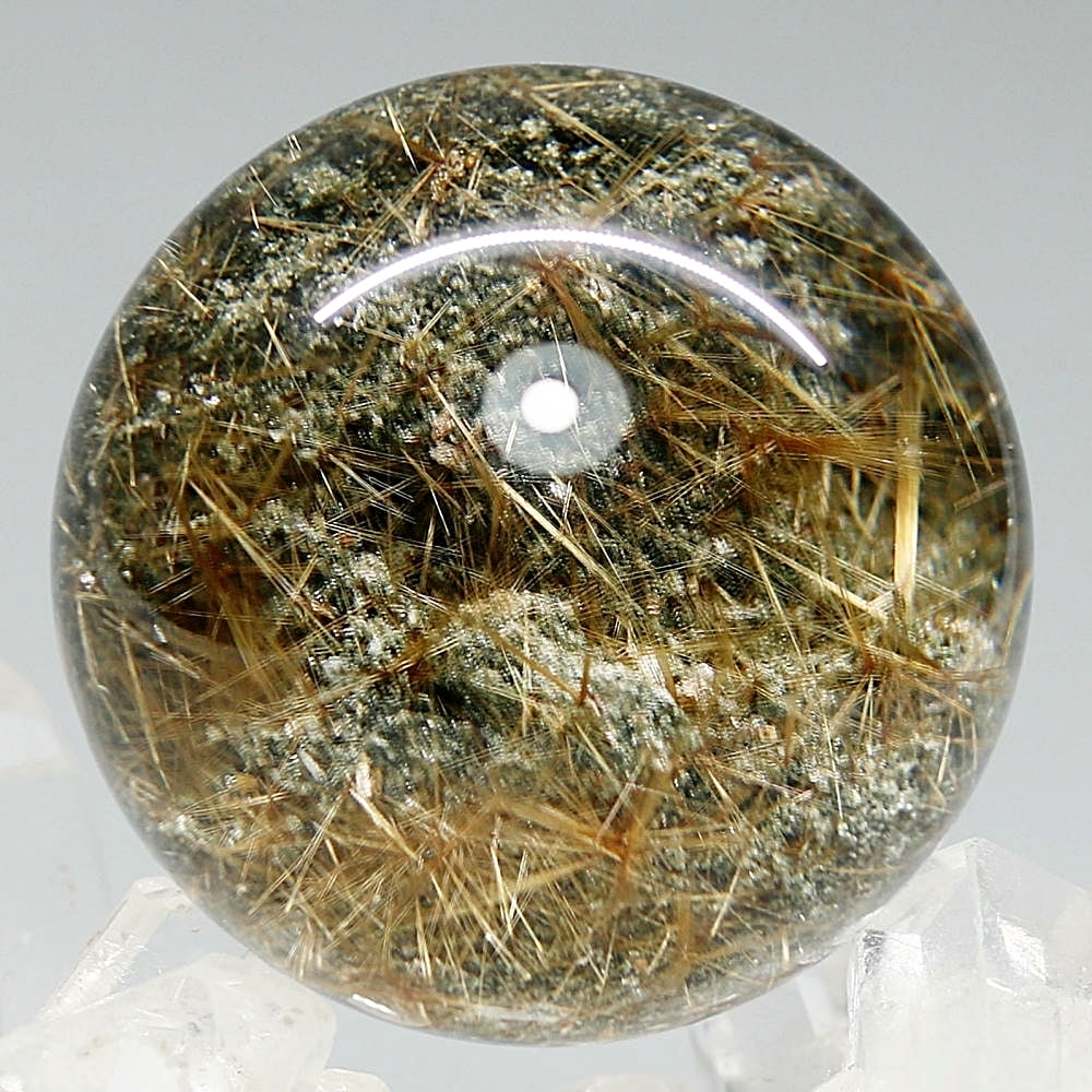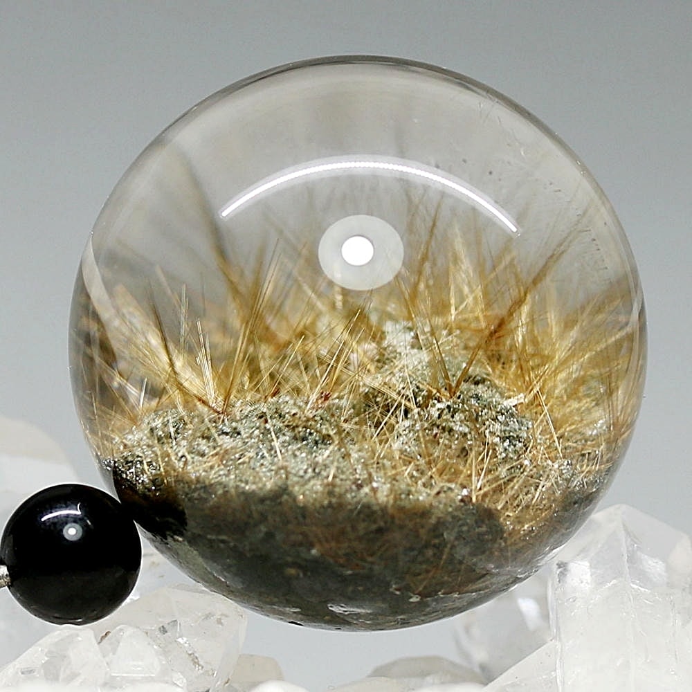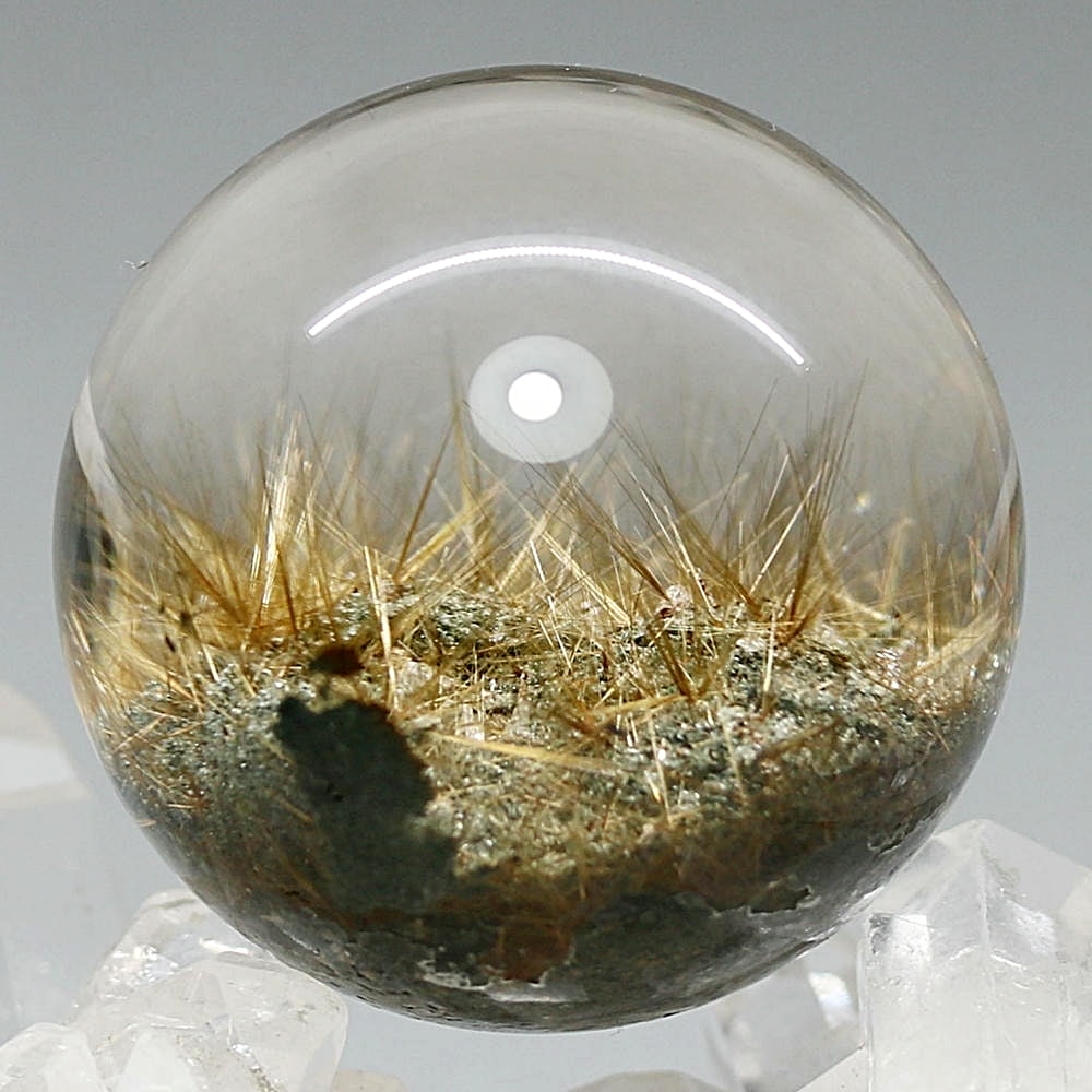 そんなマニハール産ヒマラヤ水晶の中で、非常に透明度の高い水晶にルチルクォーツ針状結晶がインクルージョンされた希少なスフィアをご用意しました。