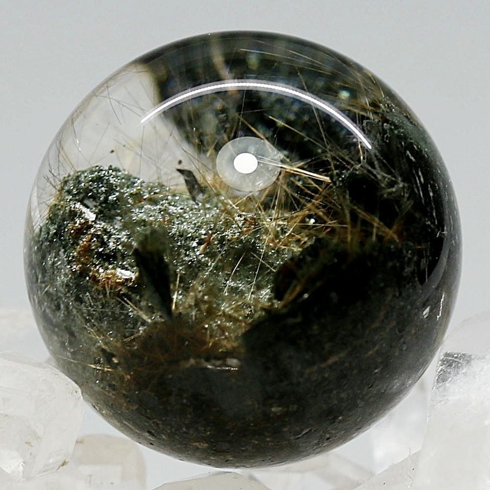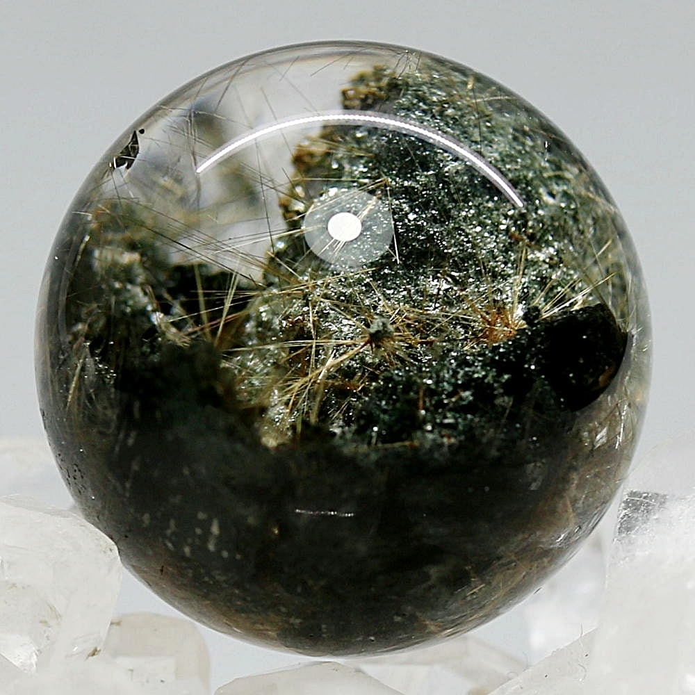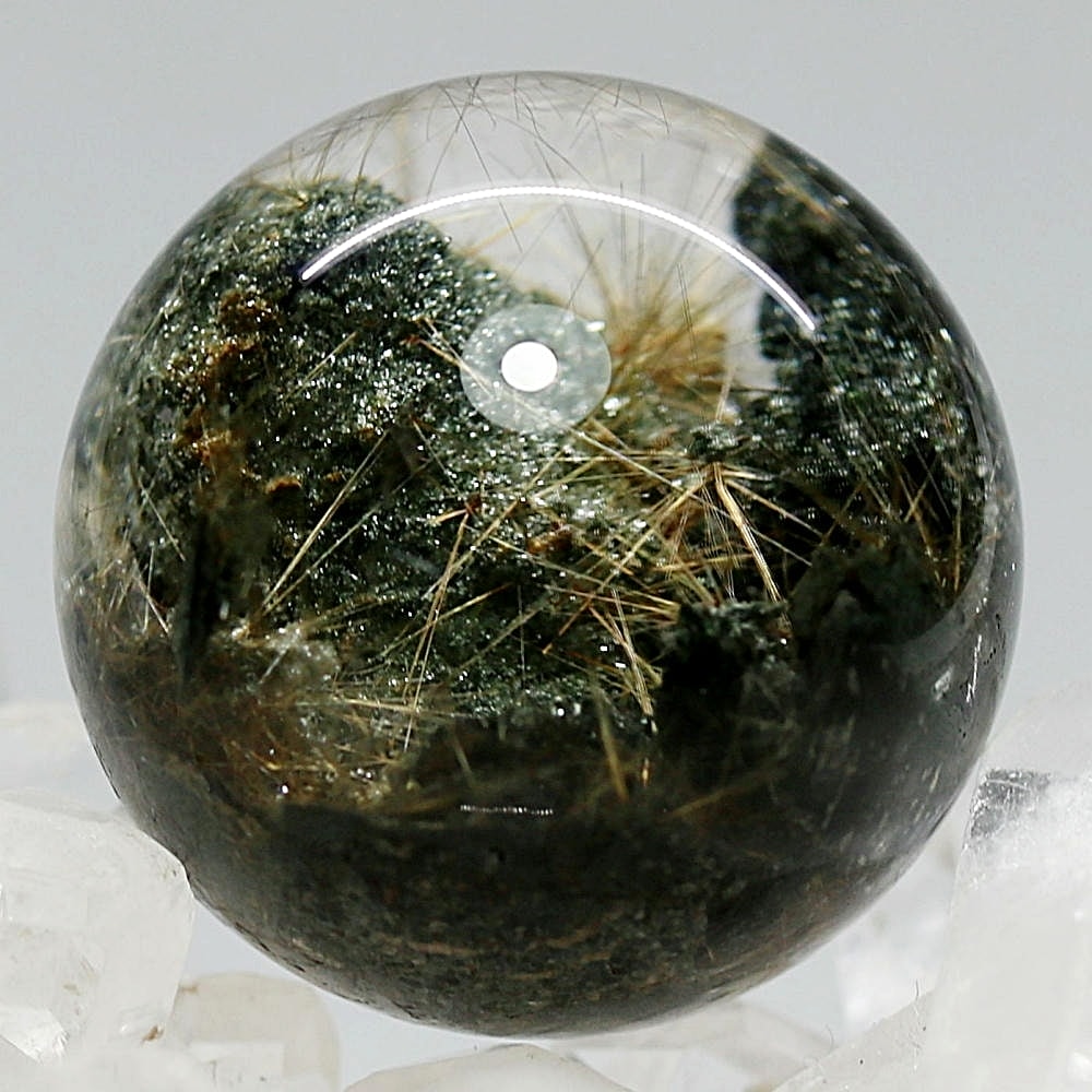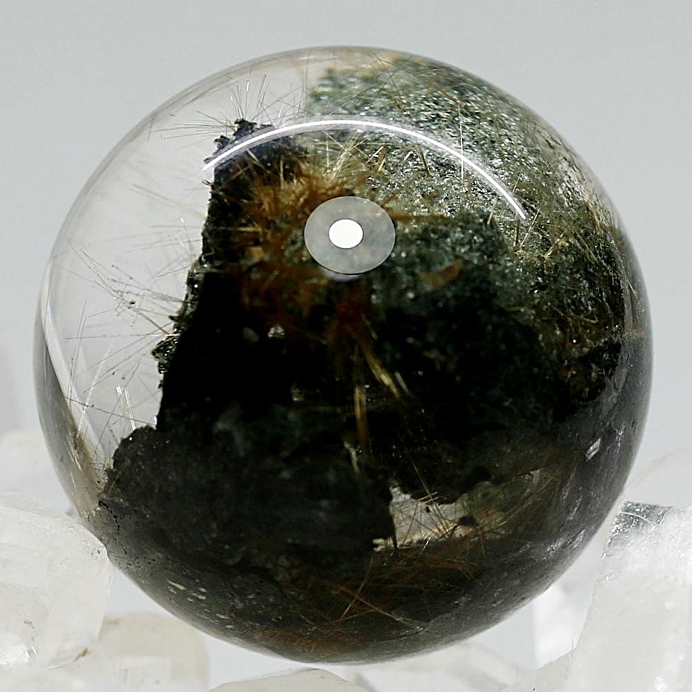 そんなマニハール産ヒマラヤ水晶の中で、非常に透明度の高い水晶にルチルクォーツ針状結晶がインクルージョンされた希少なスフィアをご用意しました。