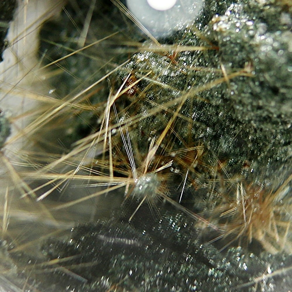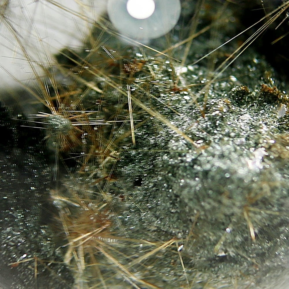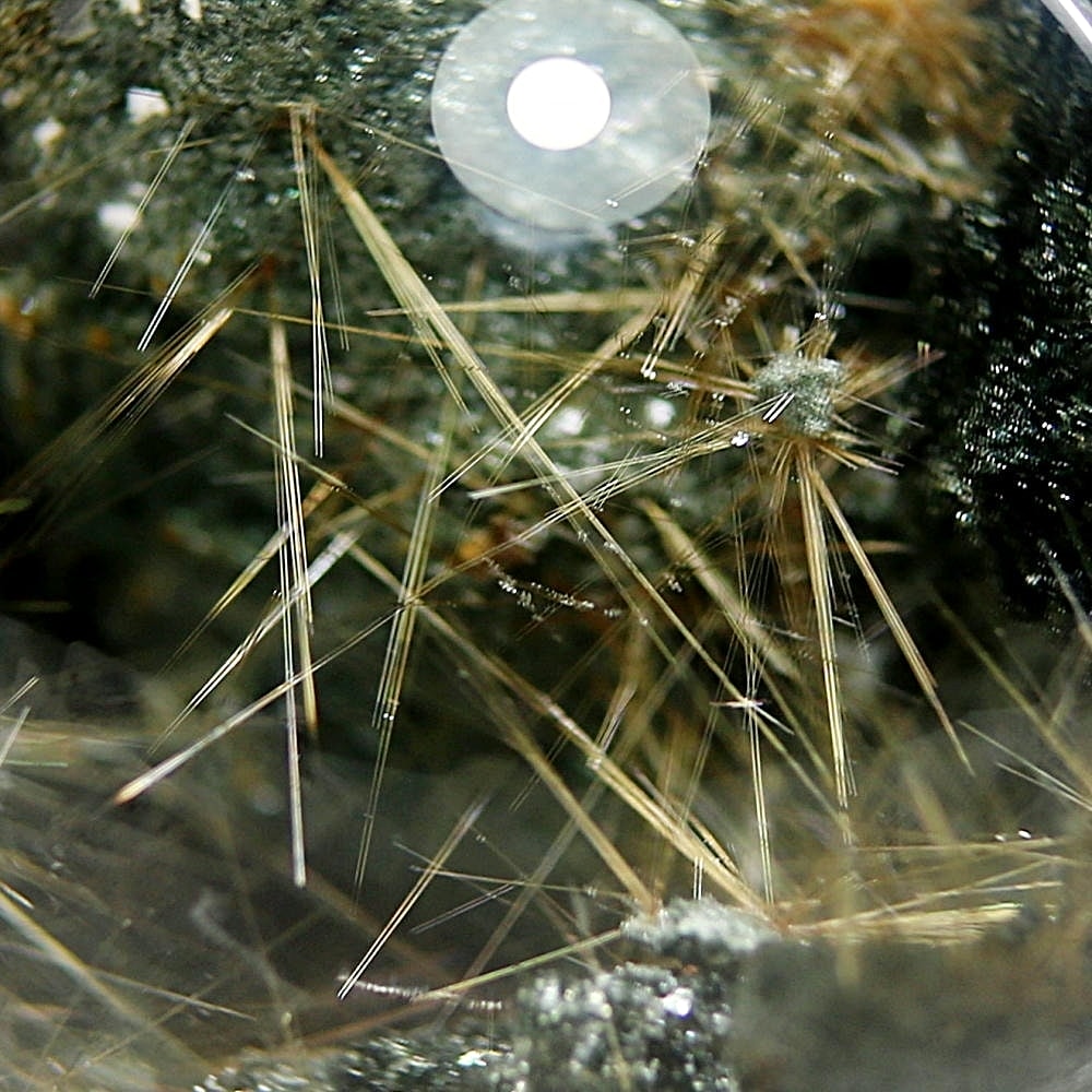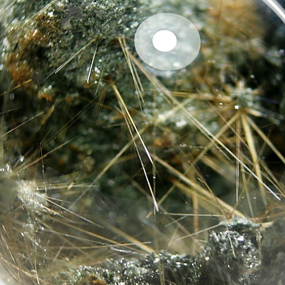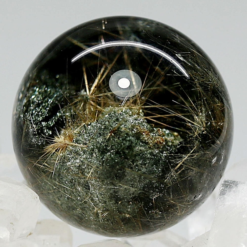 そんなマニハール産ヒマラヤ水晶の中で、非常に透明度の高い水晶にルチルクォーツ針状結晶がインクルージョンされた希少なスフィアをご用意しました。
