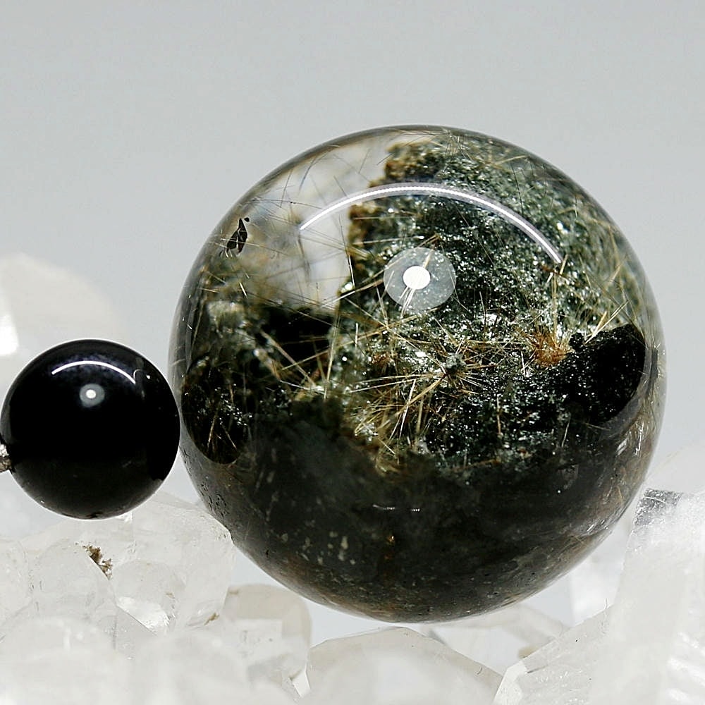 [トップクォリティ]インド/マニハール産ヒマラヤ水晶丸玉/ガーデンルチルクォーツスフィア(球体直径29.2mm)¥417,000クイックガイド送料