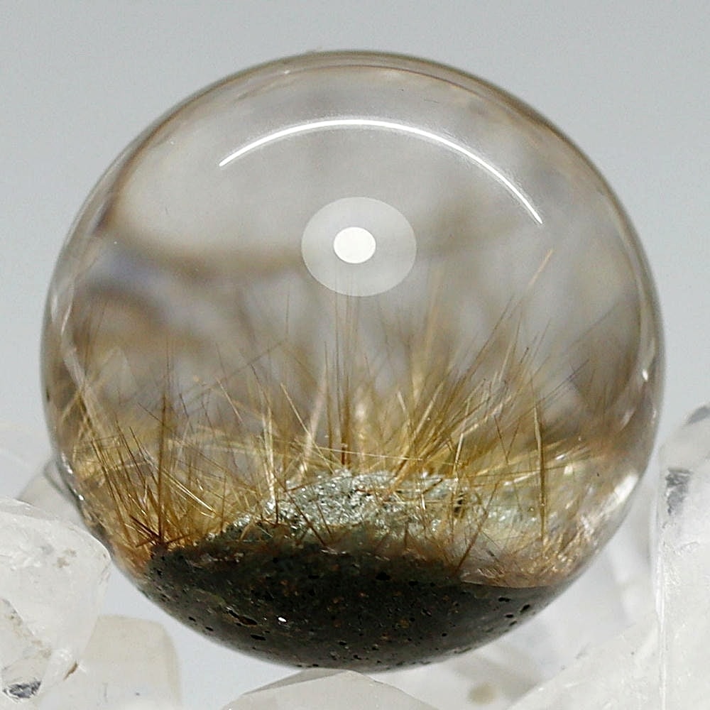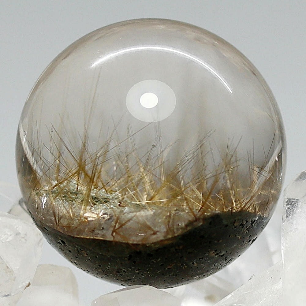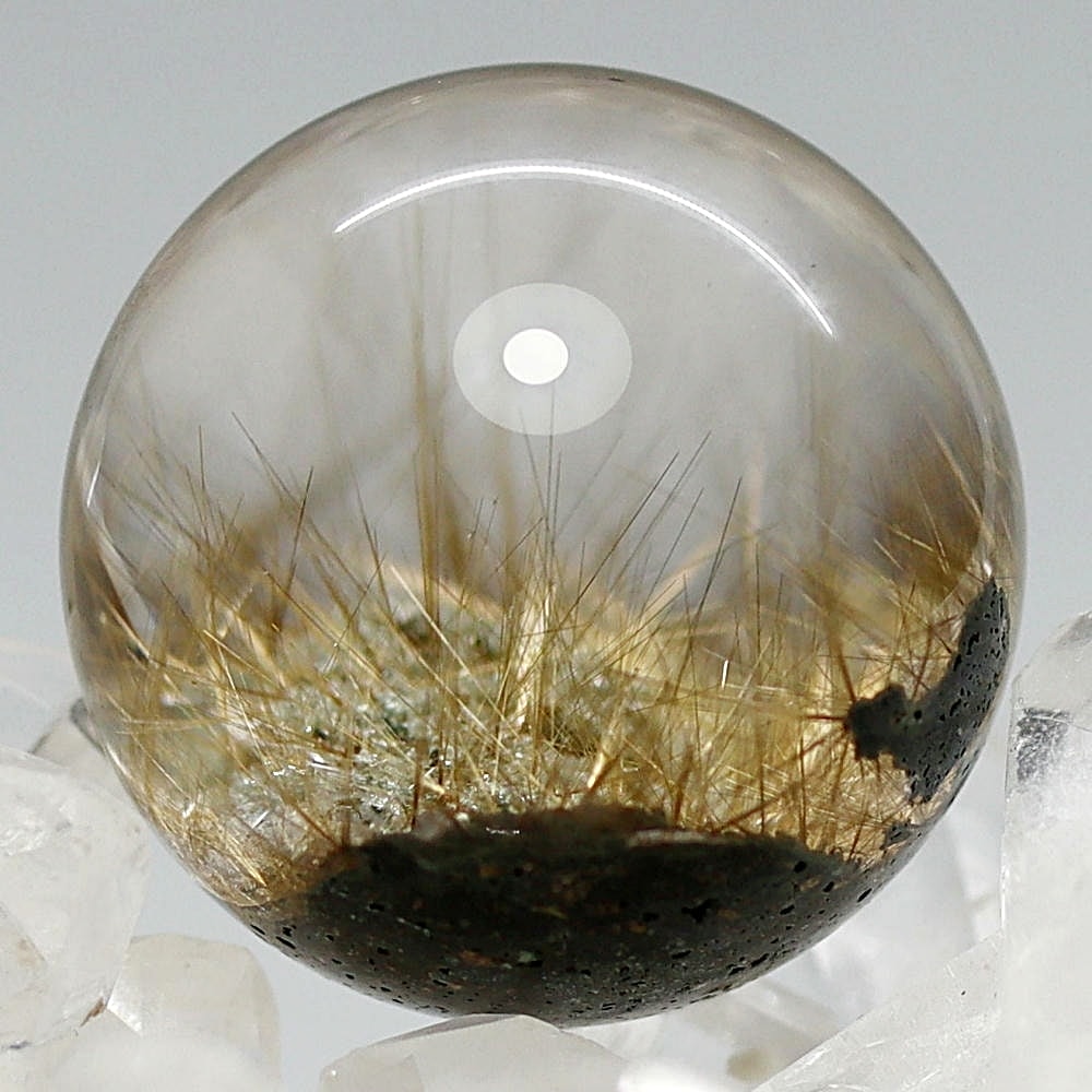 そんなマニハール産ヒマラヤ水晶の中で、非常に透明度の高い水晶にルチルクォーツ針状結晶がインクルージョンされた希少なスフィアをご用意しました。