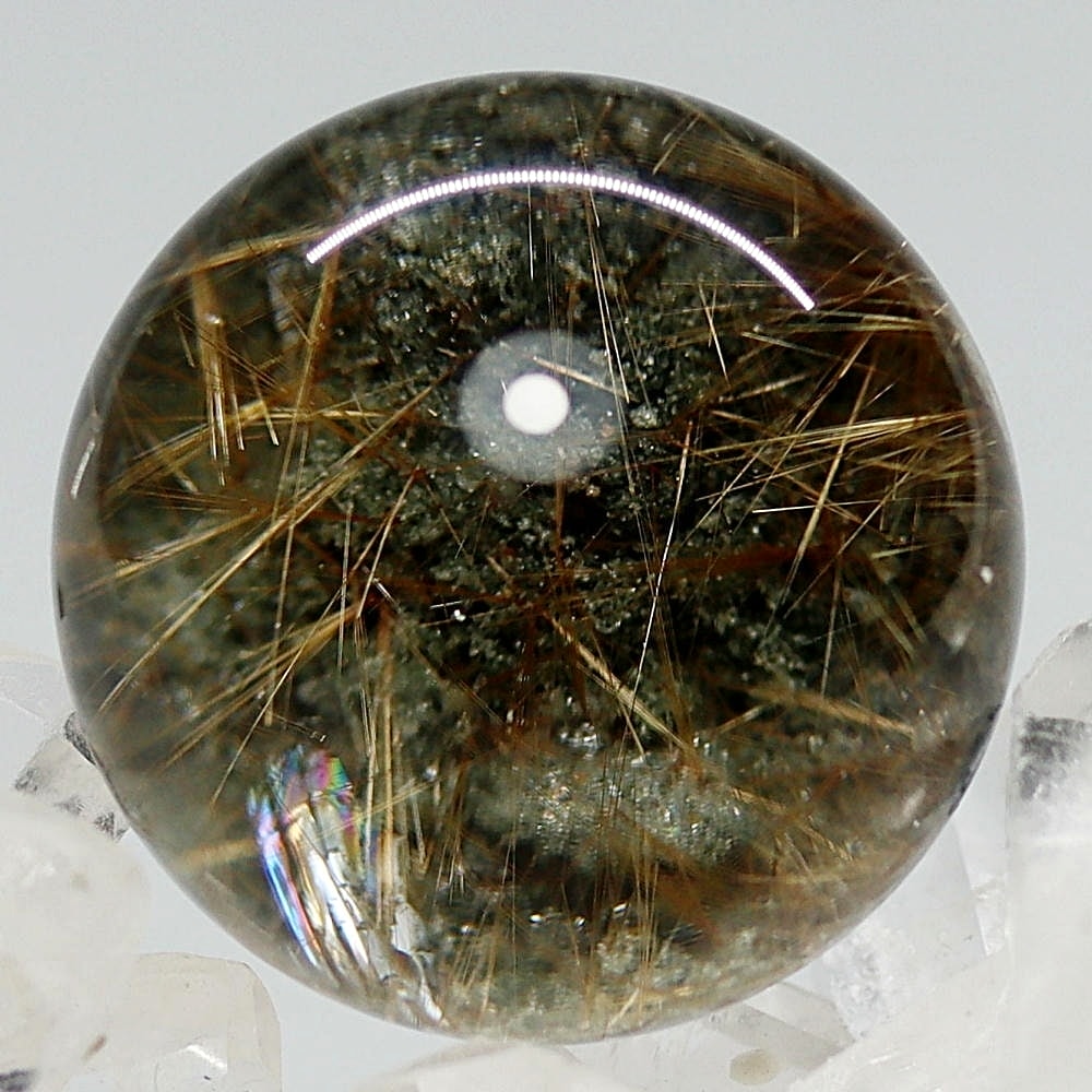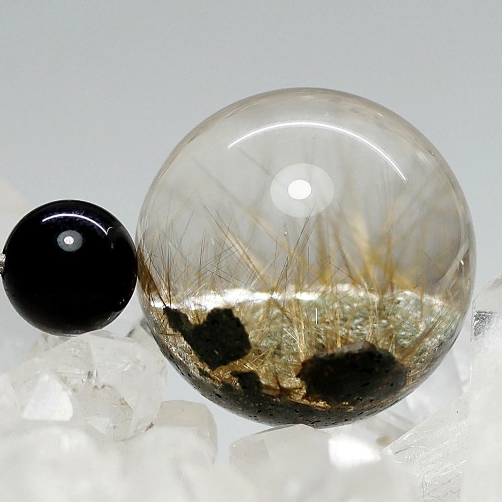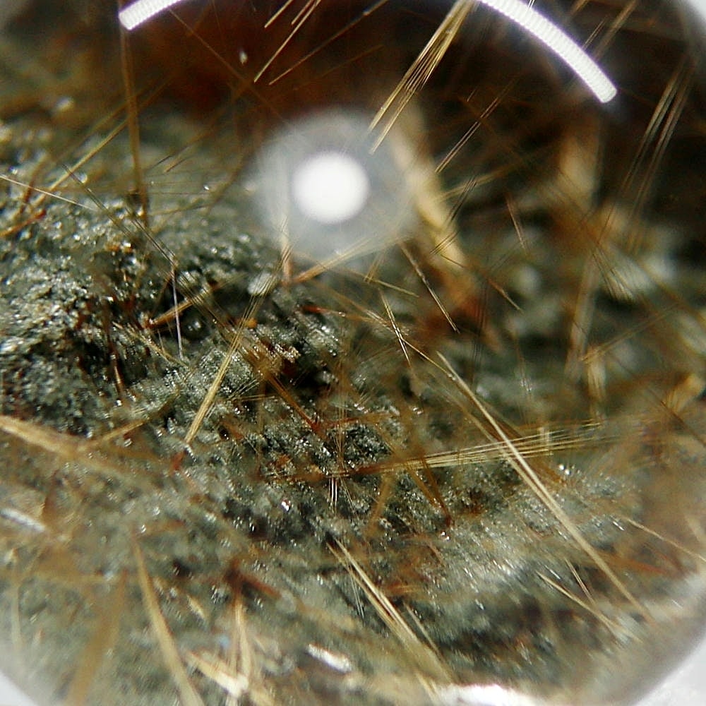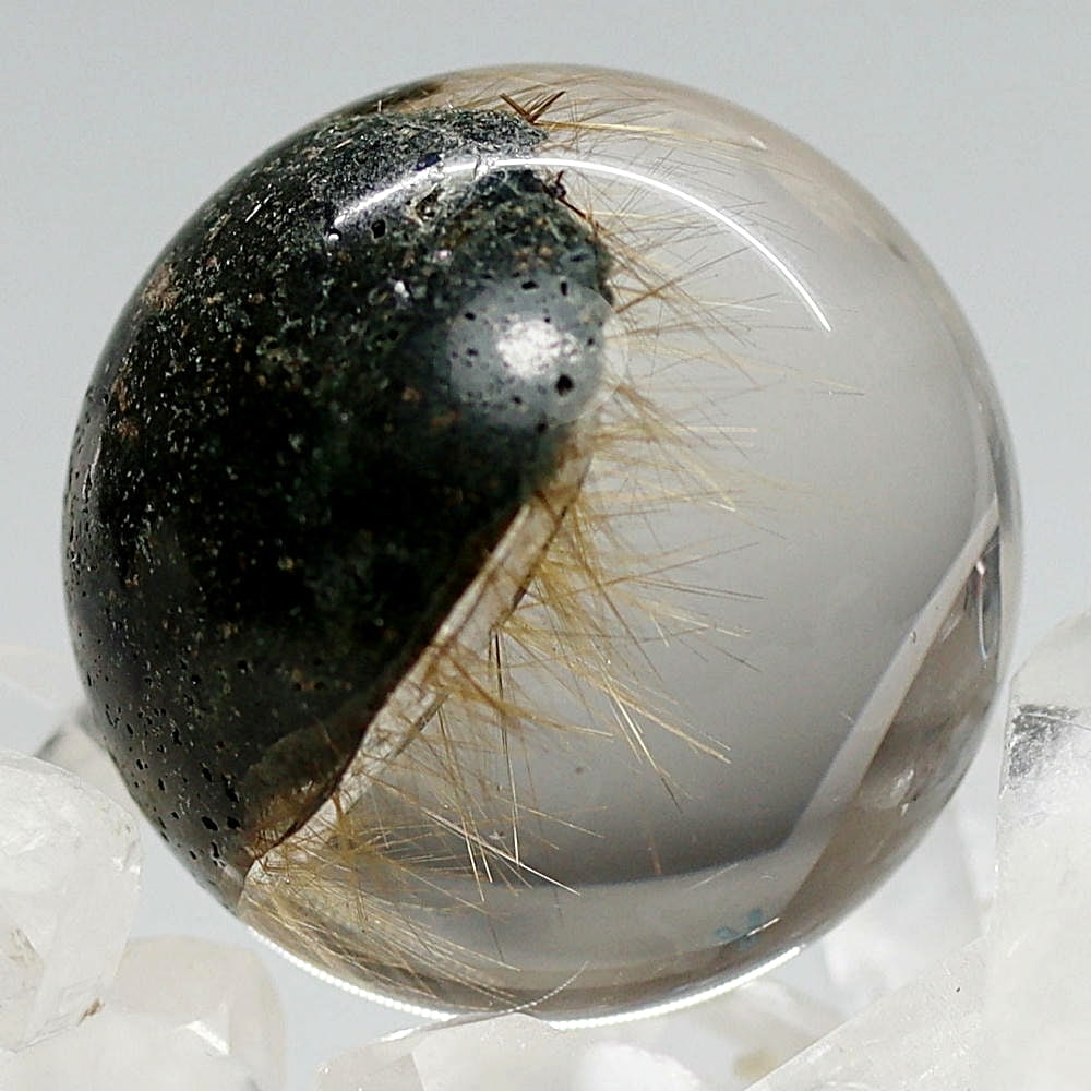 そんなマニハール産ヒマラヤ水晶の中で、非常に透明度の高い水晶にルチルクォーツ針状結晶がインクルージョンされた希少なスフィアをご用意しました。
