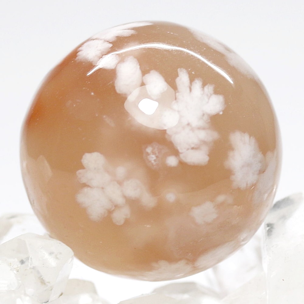 [天然無着色]マダガスカル産桜瑪瑙スフィア/チェリーブロッサムアゲート(丸玉直径約31.1〜31.6mm)¥3,200クイックガイド送料