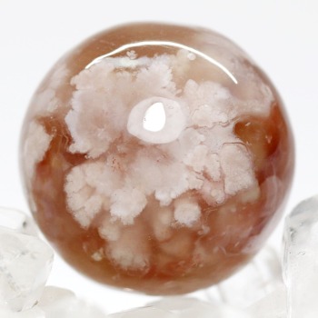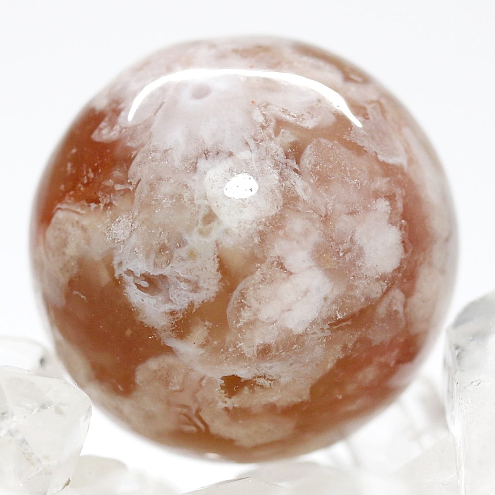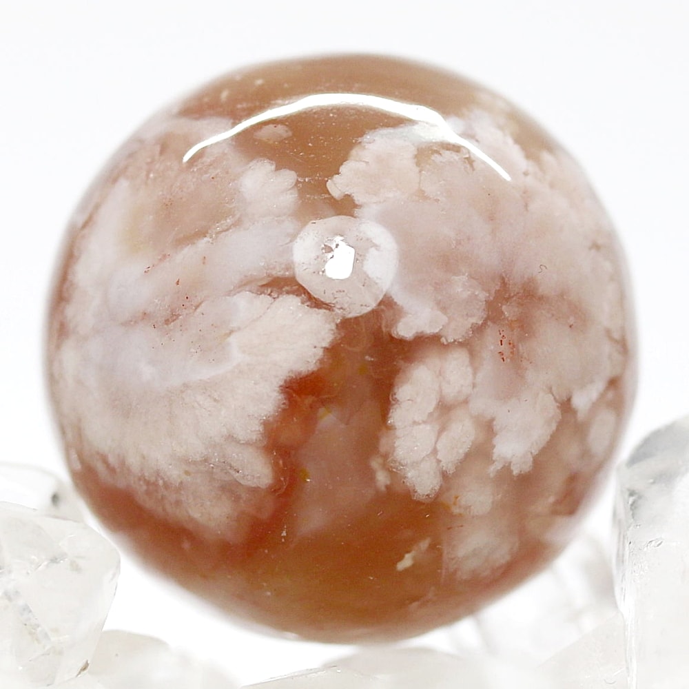 [天然無着色]マダガスカル産桜瑪瑙スフィア/チェリーブロッサムアゲート(丸玉直径約27.6~28.0mm)