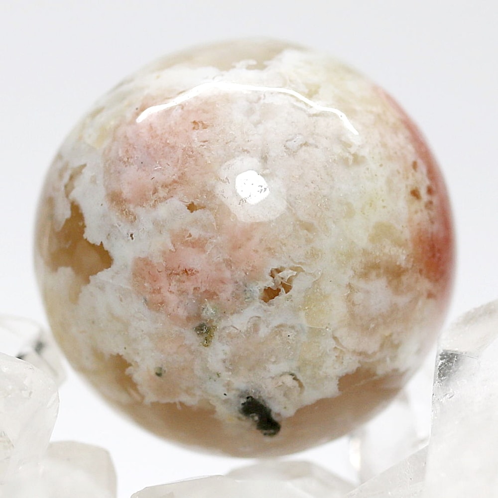 [天然無着色]マダガスカル産桜瑪瑙スフィア/チェリーブロッサムアゲート(丸玉直径約26.8~27.1mm)¥2,000クイックガイド送料