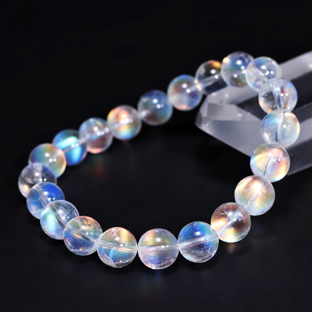 [トップクォリティ/宝石質]別鉱床マダガスカル産ホワイトラブラドライトブレスレット/レインボームーンストーン(約9.5mm玉)