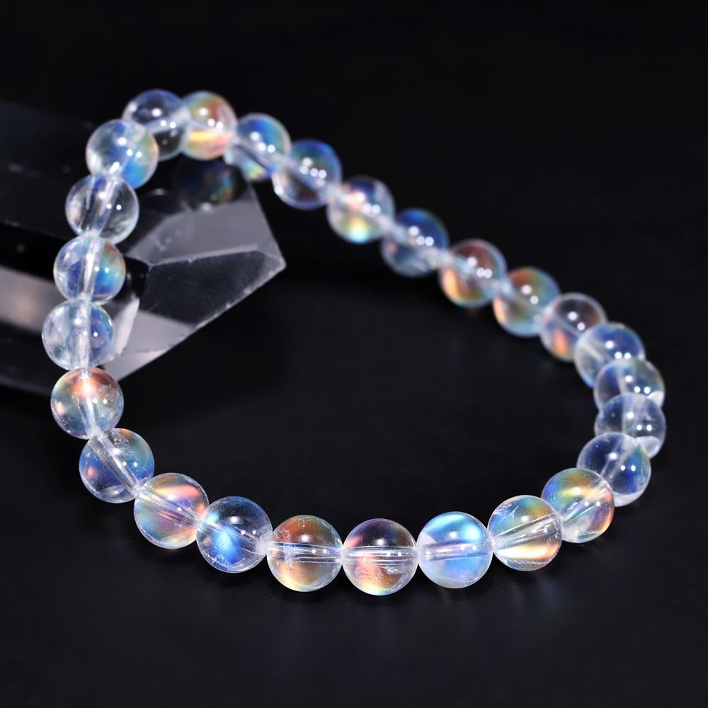 [トップクォリティ/宝石質]別鉱床マダガスカル産ホワイトラブラドライトブレスレット/レインボームーンストーン(約7mm玉)¥256,000クイックガイド送料