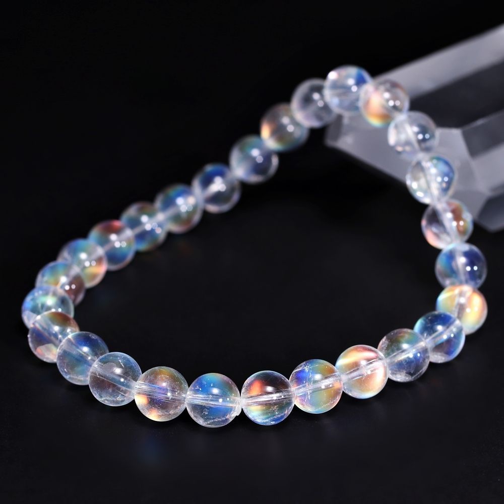 [トップクォリティ/宝石質]別鉱床マダガスカル産ホワイトラブラドライトブレスレット/レインボームーンストーン(約6.5mm玉)¥238,000クイックガイド送料