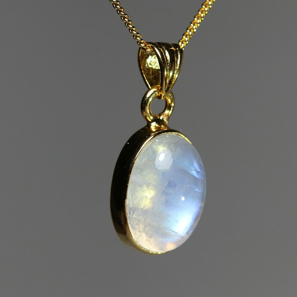 [高品質]ホワイトラブラドライトペンダントトップ/レインボームーンストーン(シルバー925・オーバル・イエローゴールドカラー)