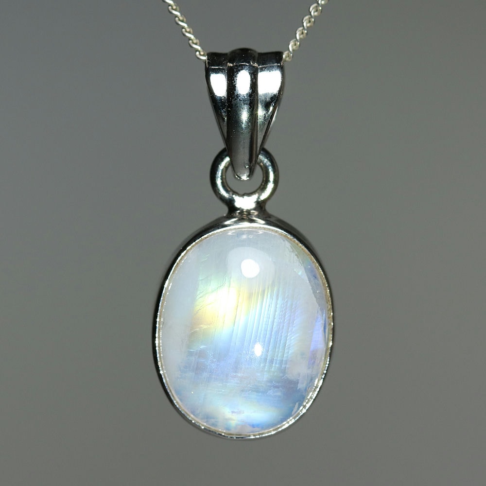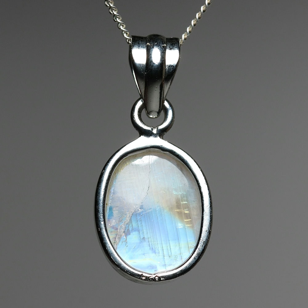 [高品質]ホワイトラブラドライトペンダントトップ/レインボームーンストーン(シルバー925・オーバル・シルバーカラー)¥7,800クイックガイド送料