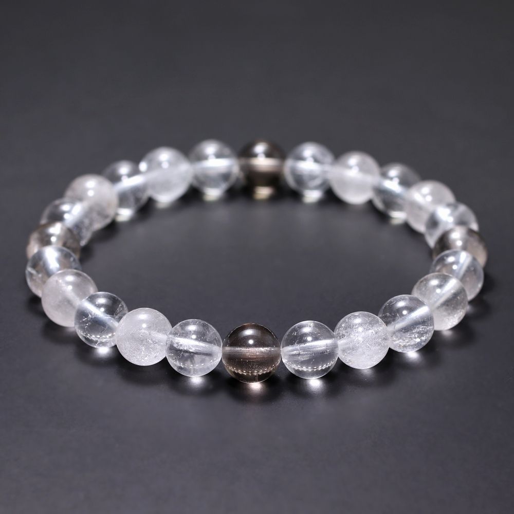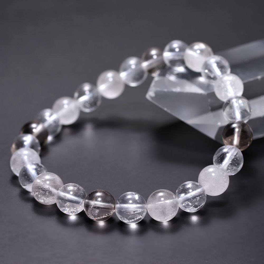 [特別価格/3A+]インド/マニハール産ヒマラヤ水晶ブレスレット(約8.5mm玉・スモーキークォーツ&クローライト入り)¥7,900クイックガイド送料