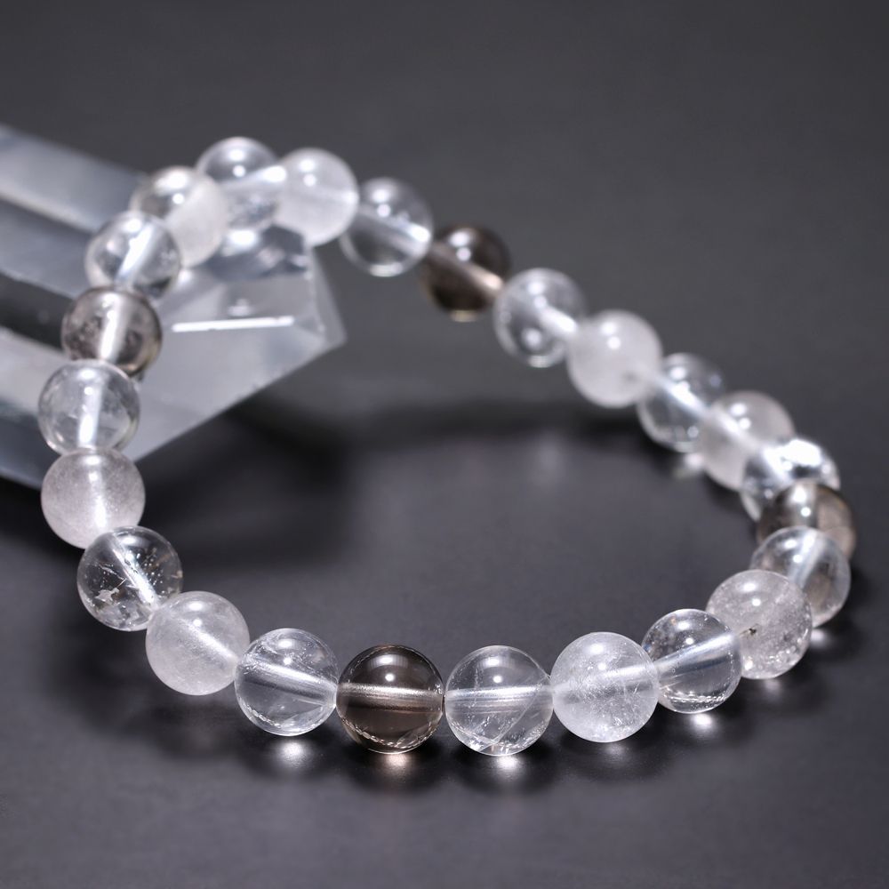 [特別価格/3A+]インド/マニハール産ヒマラヤ水晶ブレスレット(約8.5mm玉・スモーキークォーツ&クローライト入り)
