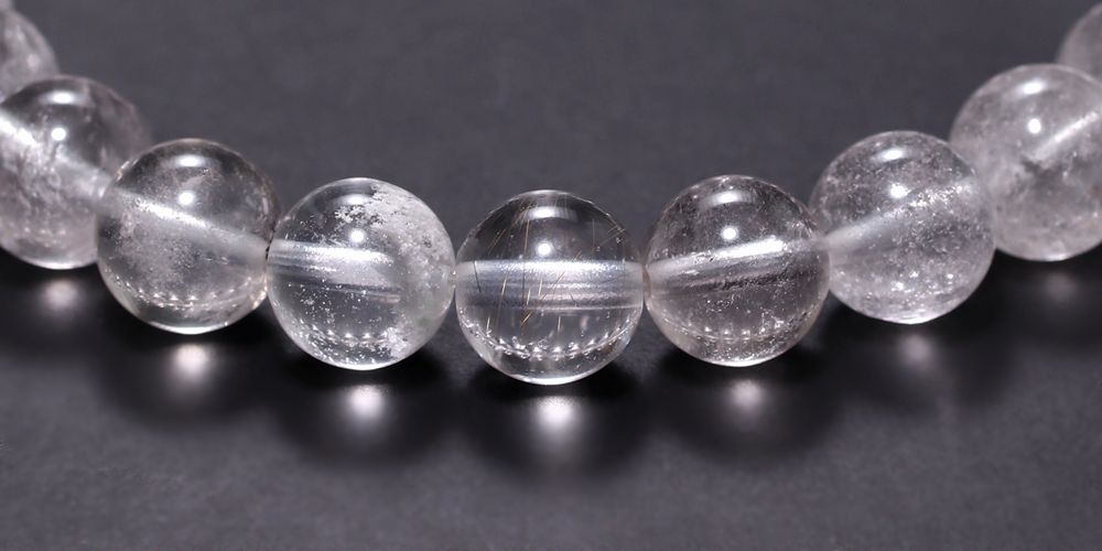 当時確保した原石は約1.5トンにも及びましたが、その中からブレスレットとして美しく仕上げられる粒はごく僅かです。特にルチルが内包されたタイプは全体の約1%程度となり、粒ごとのバランスや統一感を持たせて組み上げるものとなると、まさに選び抜かれた存在といえます。