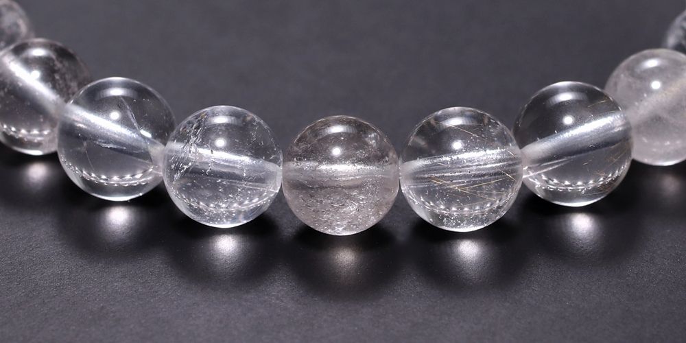 当時確保した原石は約1.5トンにも及びましたが、その中からブレスレットとして美しく仕上げられる粒はごく僅かです。特にルチルが内包されたタイプは全体の約1%程度となり、粒ごとのバランスや統一感を持たせて組み上げるものとなると、まさに選び抜かれた存在といえます。