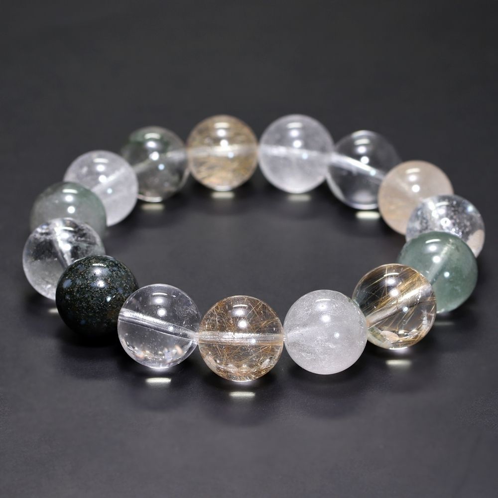 [高品質]インド/マニハール産ヒマラヤ水晶ブレスレット(約15.5mm玉・特選ミックスタイプ)