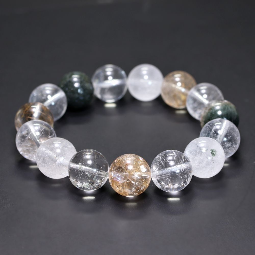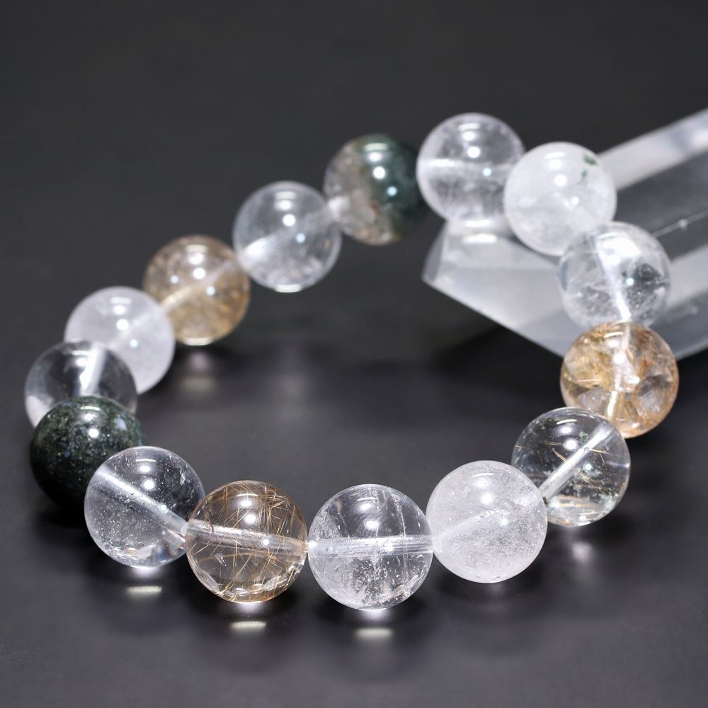 [3A++]インド/マニハール産ヒマラヤ水晶ブレスレット(約13.5mm玉・特選ミックスタイプ)