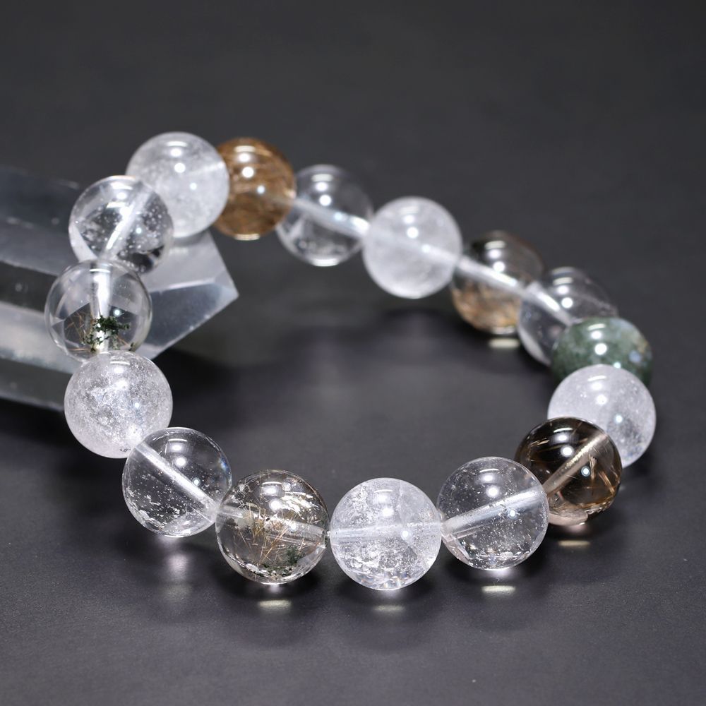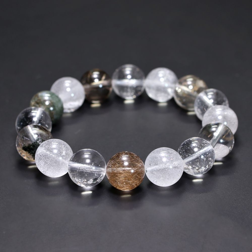 [高品質+]インド/マニハール産ヒマラヤ水晶ブレスレット(約13mm玉・特選ミックスタイプ)